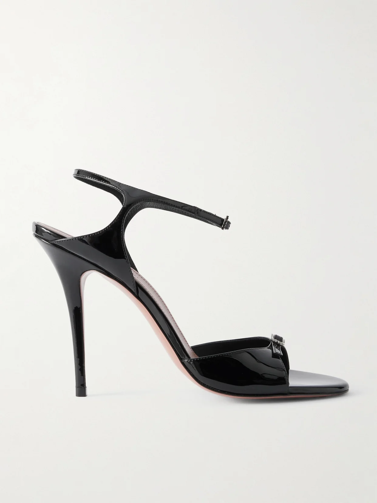 Amina Muaddi has a self-proclaimed shoe obsession - her personal collection spans several hundred pairs. These 'Adut' sandals have been made in Italy from glossy patent-leather and have delicate, crystal-embellished buckles at the ankles and toes. Wear them on formal occasions.