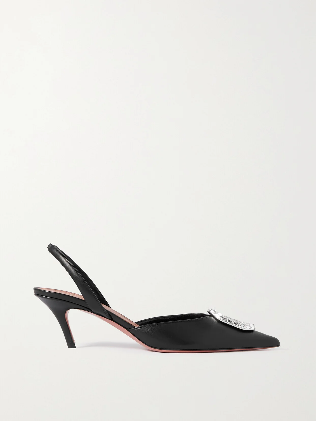 Amina Muaddi's 'Camelia' pumps radiate high-octane glamour. They're made from smooth black leather and set with crystal buckles to highlight the sharp, pointed toes.