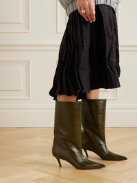EXCLUSIVE AT NET-A-PORTER. Amina Muaddi's 'Fiona' boots look just as glamorous in person as they will in pictures. Made from crinkled-leather, they have sharp pointed toes and are set on distinctive slanted heels. Team yours with mini hemlines and oversized blazers.