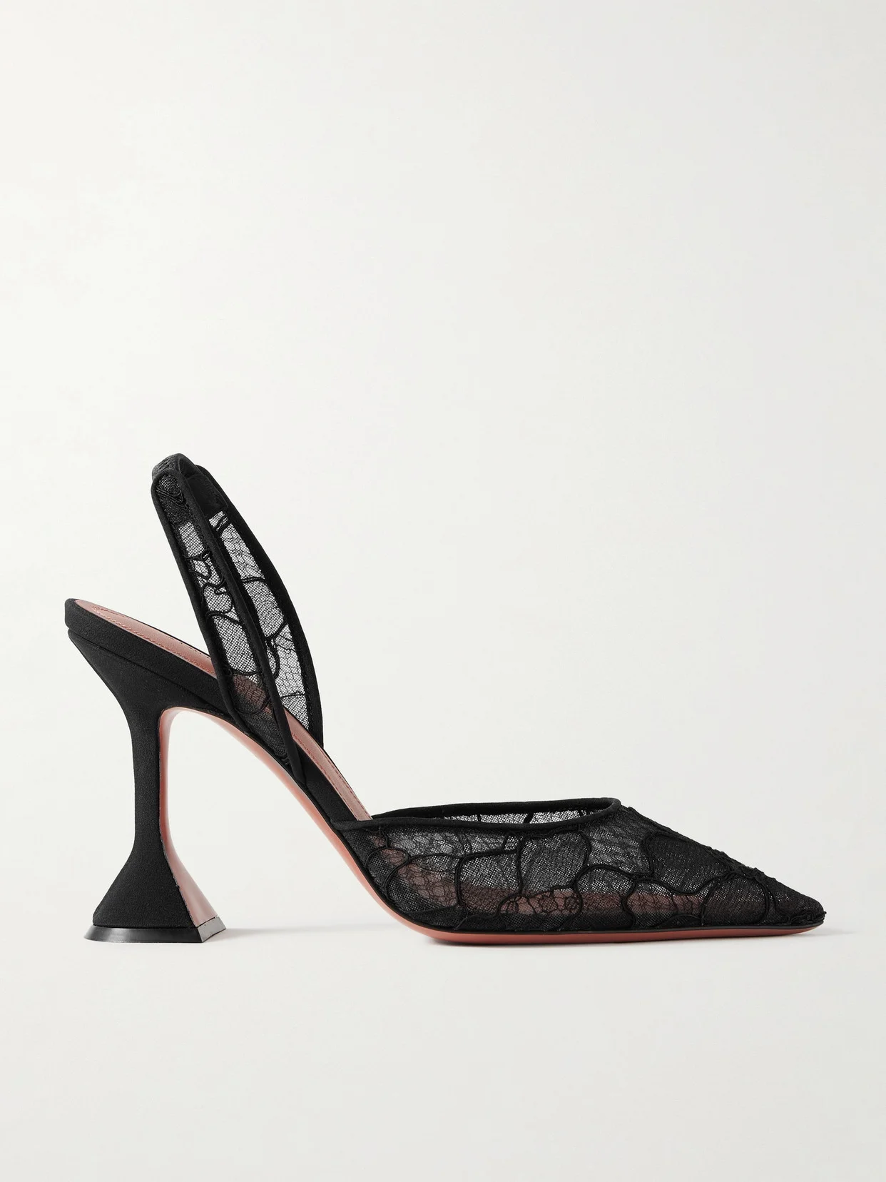 Unexpected fabrications and signature details mean Amina Muaddi's 'Holli' pumps are like objets d'art. This pair is made from black corded lace and set on the designer's trademark pyramid heel. Consider hemlines carefully so the low-cut vamp and sharp point toe remains in focus.