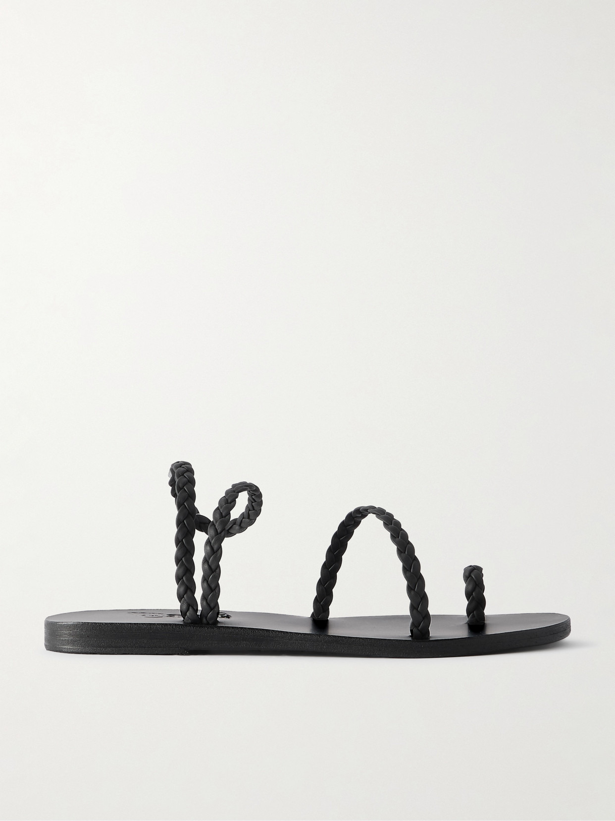 Ancient Greek Sandals' 'Eleftheria' sandals are designed with three braided straps that wrap elegantly around your foot. They're made from black leather and set on a 10mm heel for added lift and comfort. Wear them to the beach or dinner post-swim.