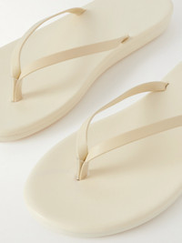 All of Ancient Greek Sandals' footwear is handcrafted by local artisans using time-honored techniques, ensuring flawless quality. These 'Saionara' flip flops are made from chemical-free cream leather that only looks and feels better with wear. They have a slight platform that adds subtle lift, and will work well with anything from dresses to denim.