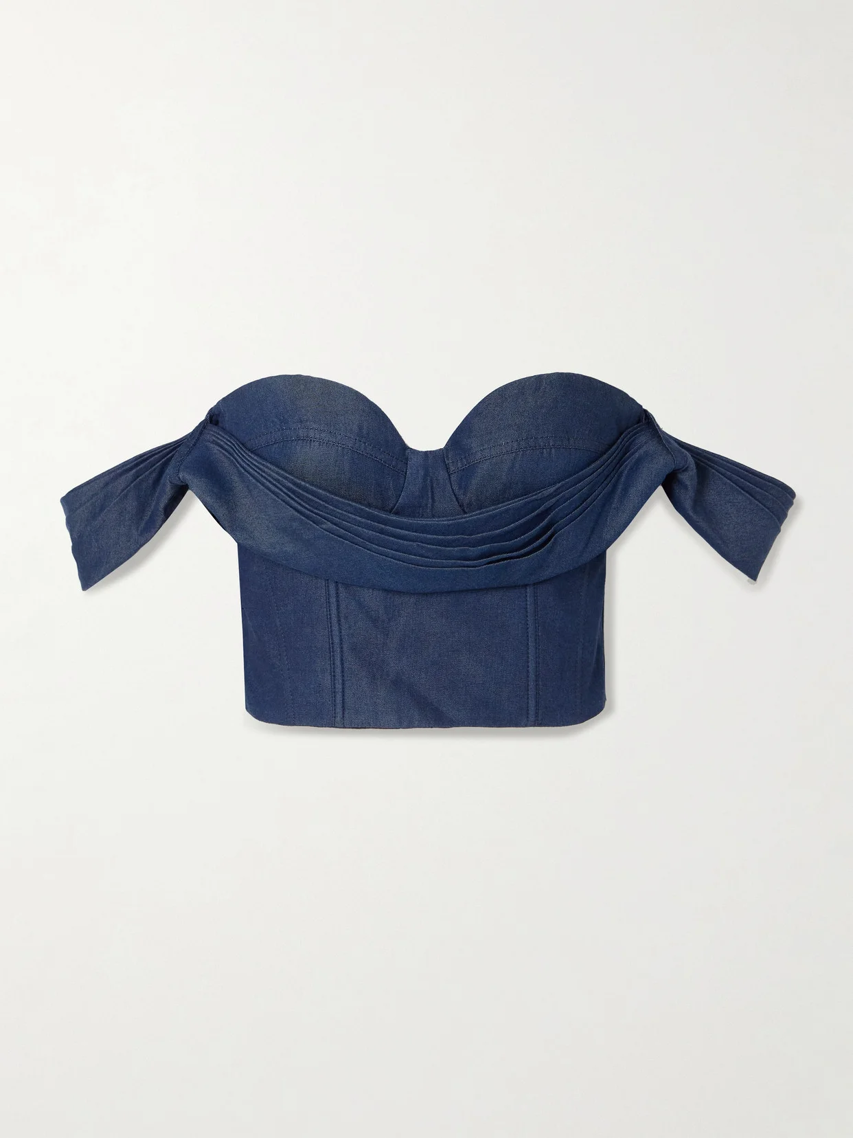 De Azahar off-the-shoulder draped TENCEL™ bustier top Dark denim