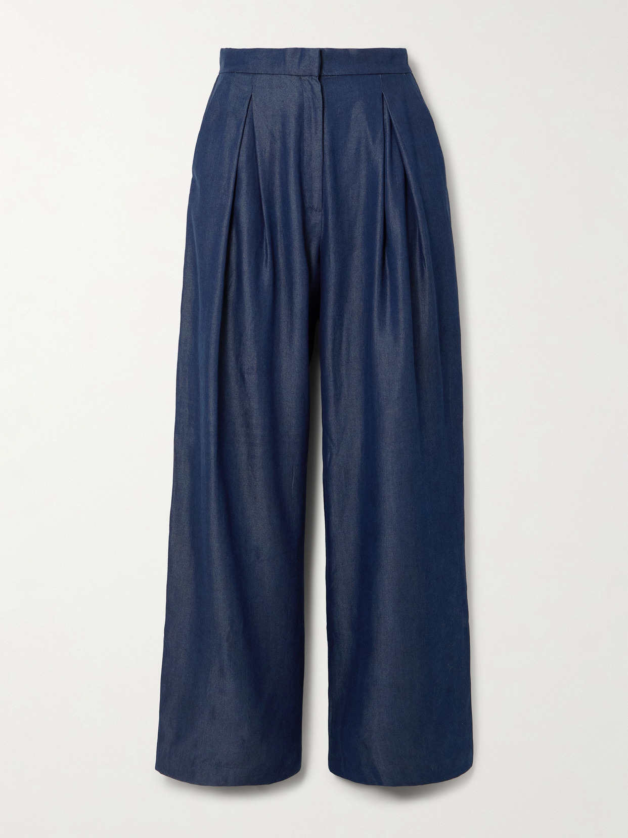 Each of Andres Otalora's designs is made by a team of skilled local craftswomen in Colombia. Tailored from TENCEL™ that resembles denim, these 'Plenitud' pants sit high on the waist and have inverted pleats that enhance the wide-leg shape. Wear yours with the matching 'De Azahar' top in our edit. Lower-Impact Materials. This product is made using at least 50% lower-impact materials or ingredients. Responsible Craftsmanship. This product promotes artisanal skills and a brand that invests in communities and adheres to fair-trade principles. Find out more about our NET SUSTAIN criteria here.