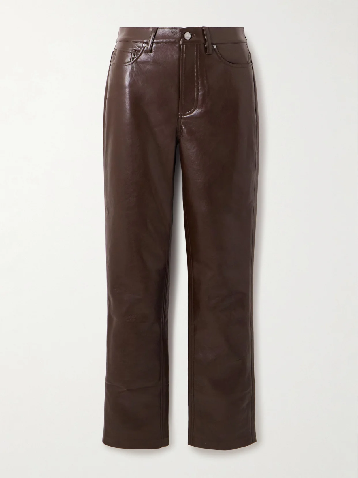 Anine Bing's 'Bruno' pants are made a shiny fabric using 48% recycled leather and have a classic five-pocket construction. They sit high on the waist and have slim, cropped legs. The dark-brown shade will go with just about everything.