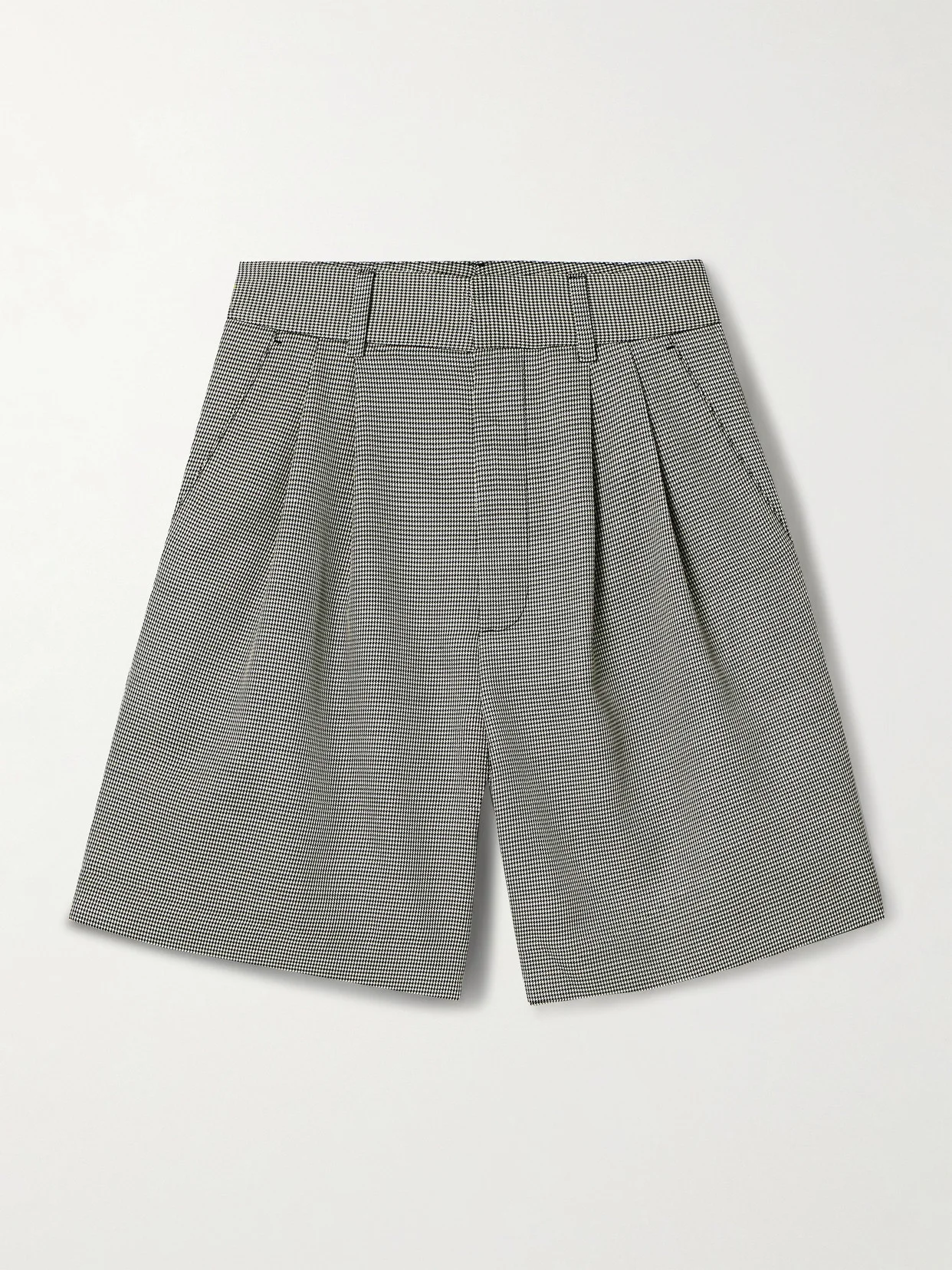 Carrie Pleated Houndstooth Wool-blend Shorts