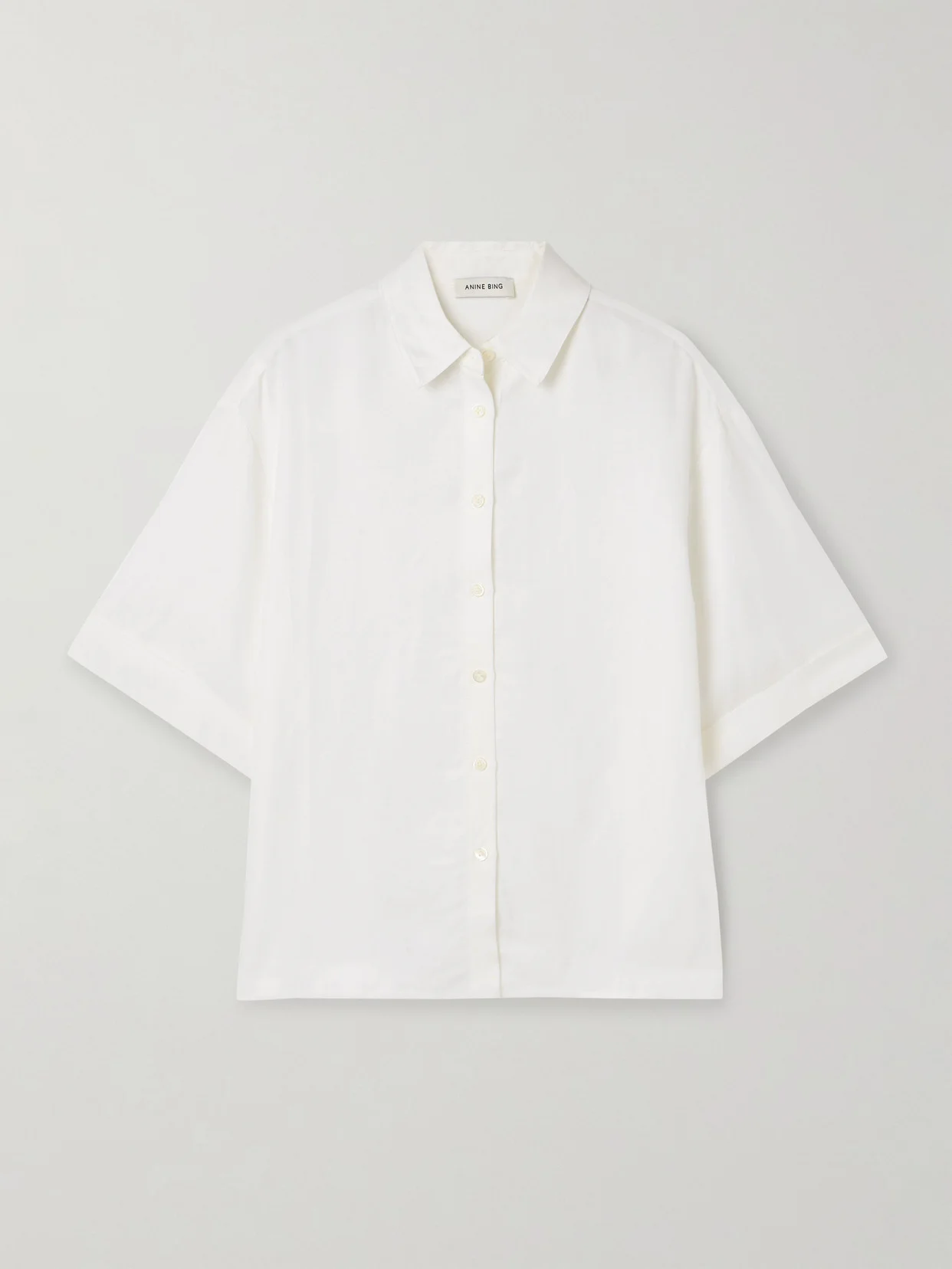 Anine Bing's 'Coco' shirt is woven with a generous amount of linen, ensuring a lightweight and breathable feel. It's cut for a boxy fit and has elbow-grazing sleeves. Tuck it into jeans or shorts, undoing a few top buttons to show off a delicate necklace.
