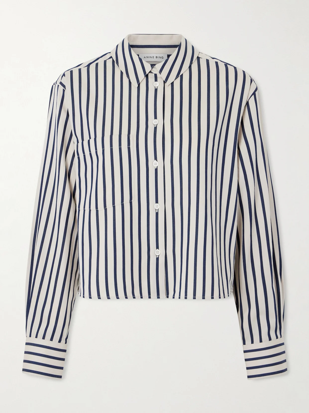 This version of Anine Bing's 'Essie' shirt is patterned with bold navy stripes. It's cut from crisp cotton-poplin in a slightly loose fit with a chest patch pocket. Wear yours with the label's jeans.