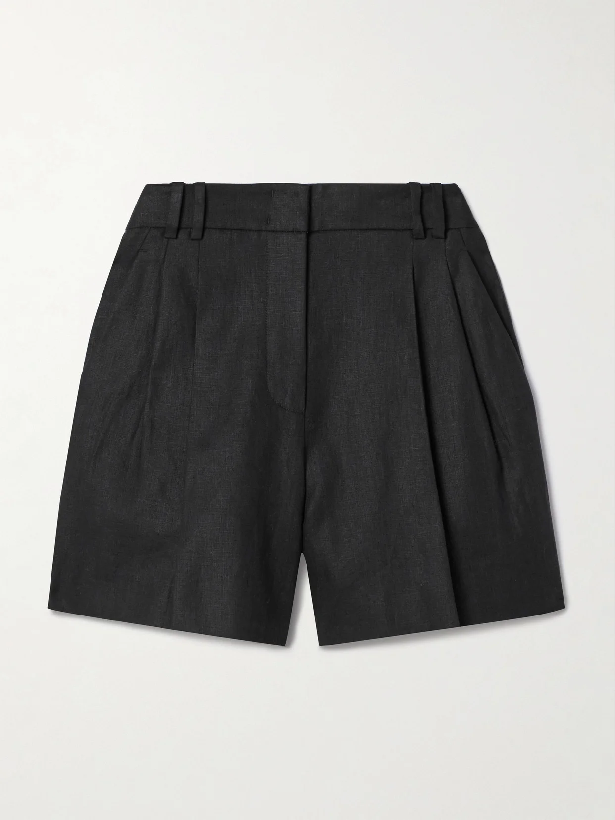 Another Tomorrow's shorts are tailored from lightweight certified linen, making them perfect for balmy temperatures. Designed in classic black, they sit high on the waist and have pleated, wide legs. Style yours with a tank or tucked-in shirting. This product was created using Considered Materials. Find out more about NET SUSTAIN here.