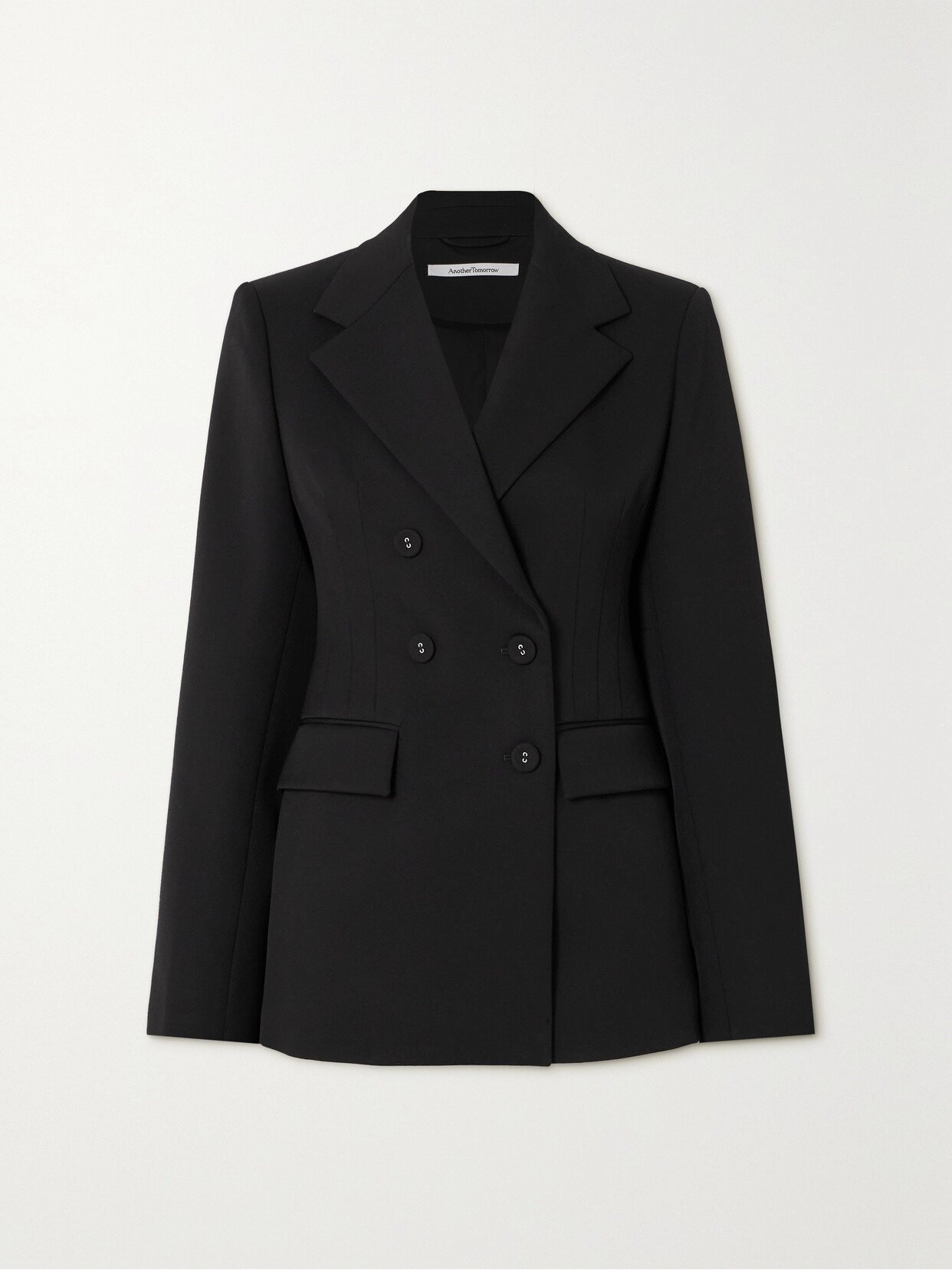 It's the impeccable attention to detail that'll make Another Tomorrow's clothes foundational in your wardrobe. Tailored from wool-blend twill, this blazer is cinched at the waist to give shape to the double-breasted silhouette. The asymmetric buttons are quietly striking.
