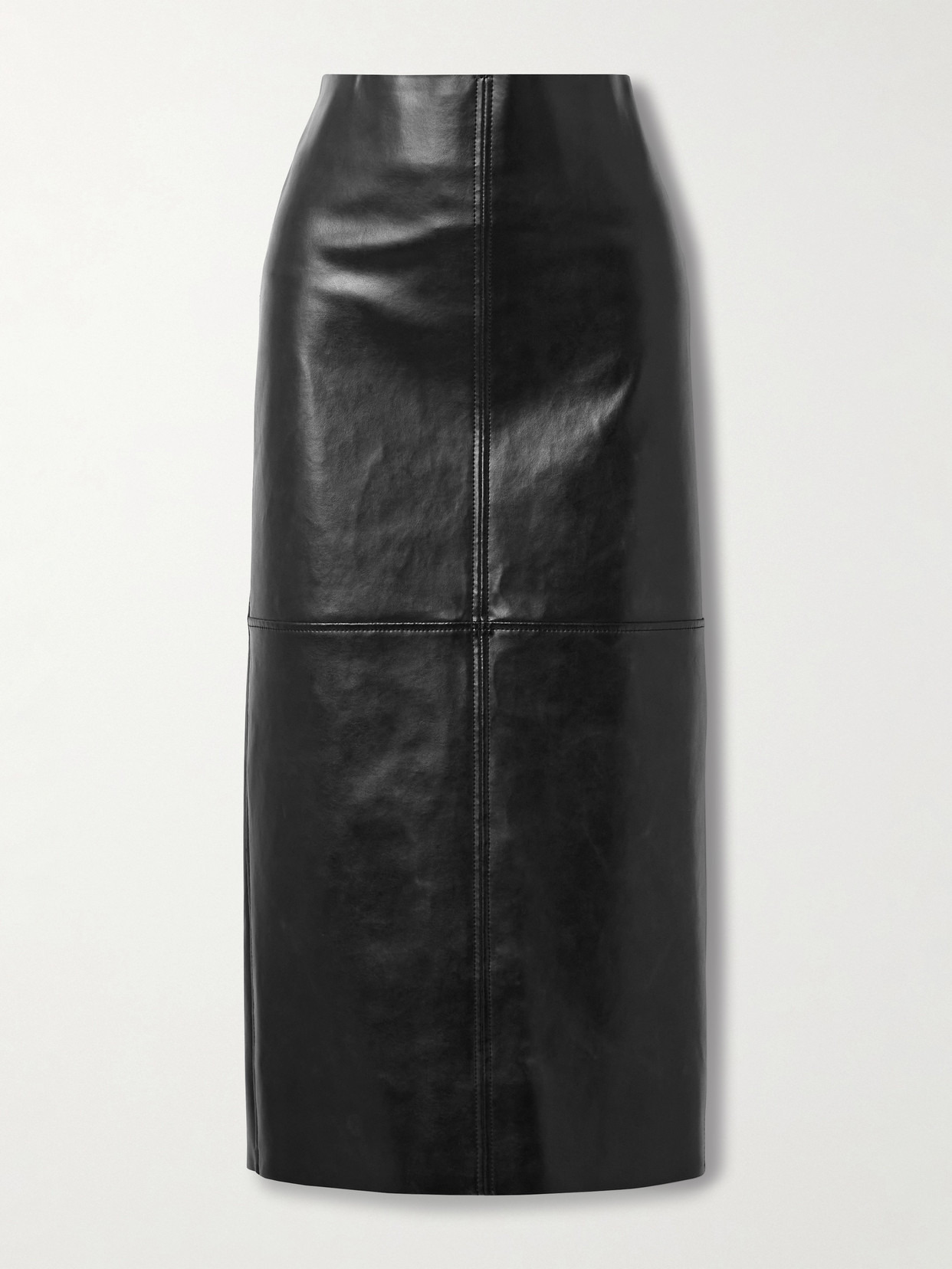 Another Tomorrow's midi skirt is made from MIRUM® - a plastic-free leather alternative that's produced using natural rubber and plant materials. It has a paneled construction and is fully lined for a smooth fit.