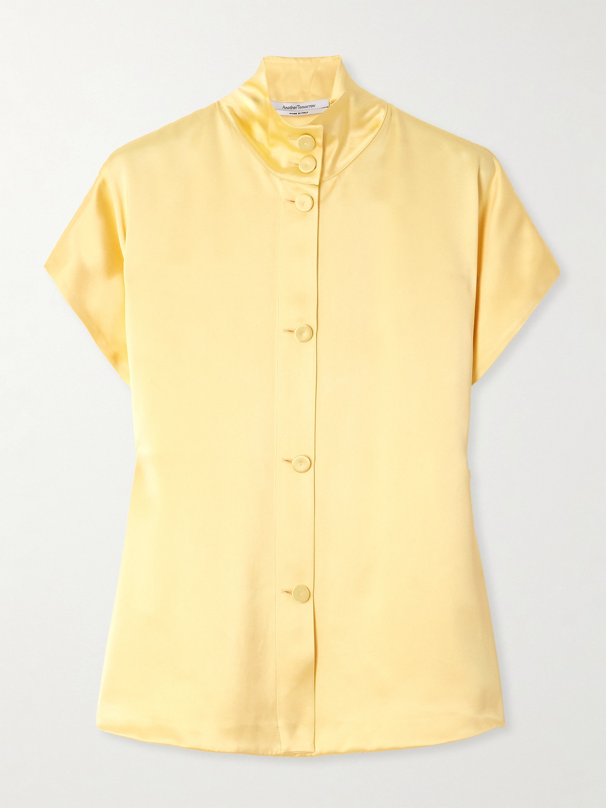 EXCLUSIVE AT NET-A-PORTER. Another Tomorrow's shirt is cut from lustrous satin that drapes beautifully over your frame. It has a high neckline, covered buttons and short sleeves with generous armholes. We think it looks especially chic styled with the coordinating pants.