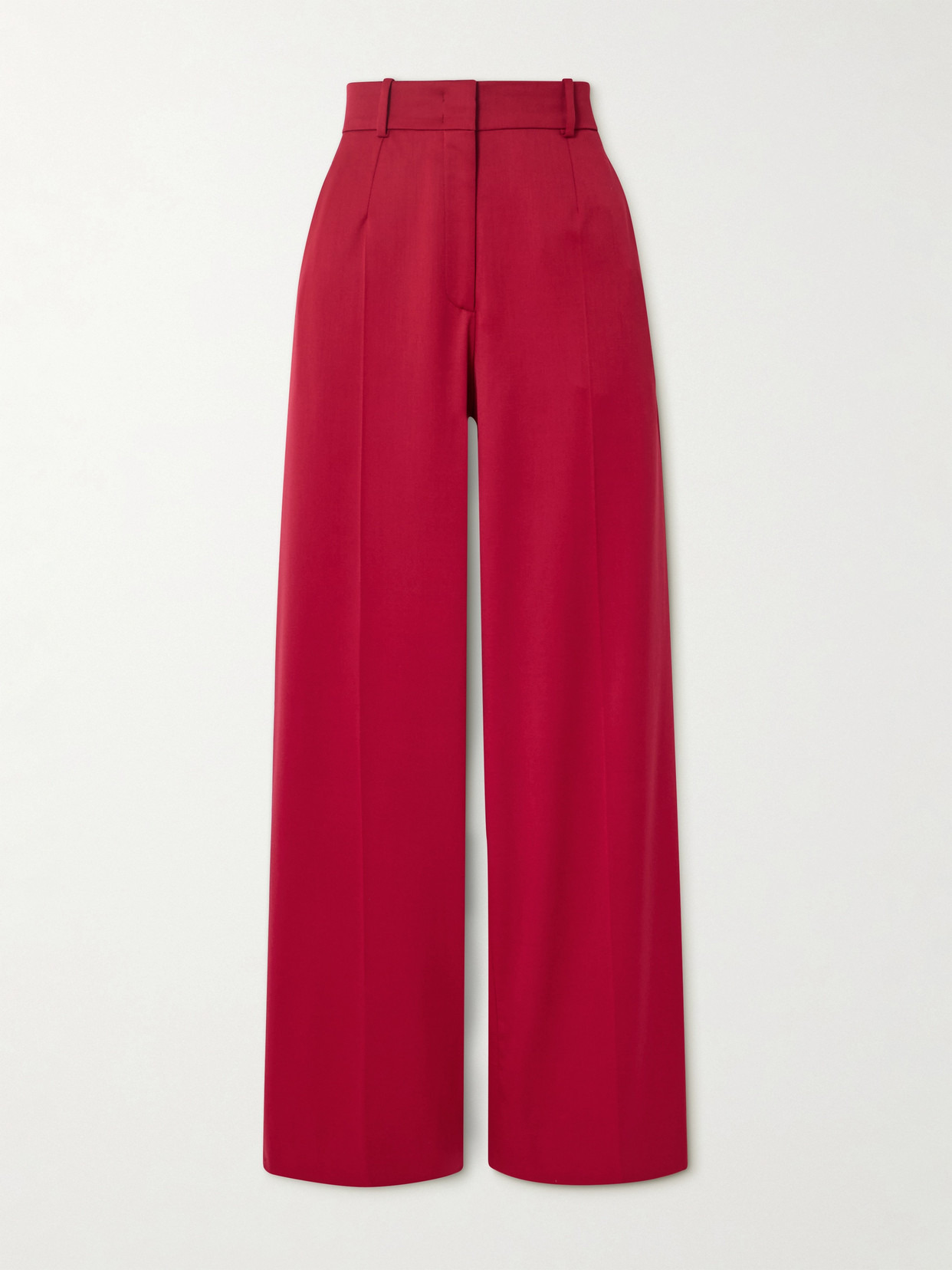 Another Tomorrow's pants are tailored from wool-blend in a confidence-boosting 'Ruby' red. They're designed to sit flatteringly high on the waist and have subtle darts along the hips and creases through the flowy, wide legs.