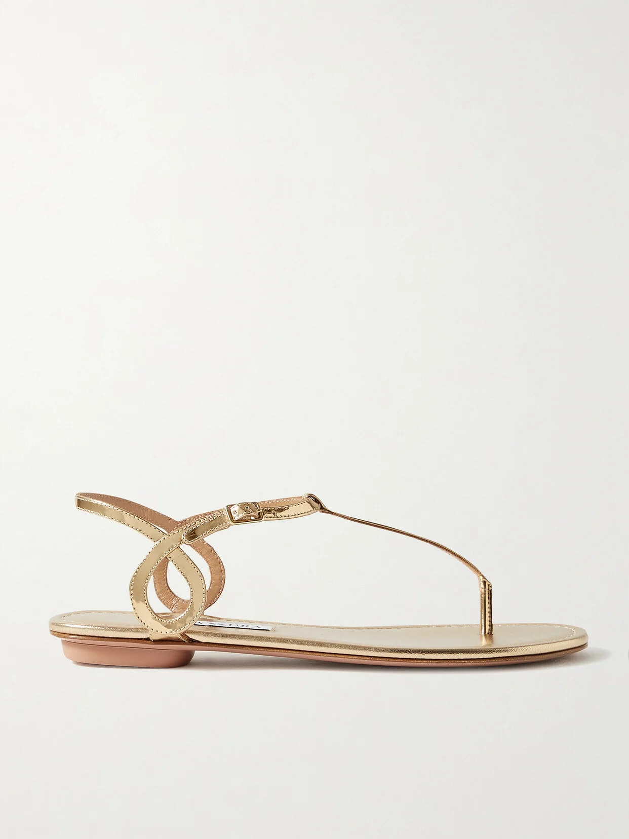 Aquazzura's 'Almost Bare' sandals are made from slim strips of lustrous gold leather that swirl at the ankle, beautifully framing your foot. They rest on slight heels and have a buckle fastening to adjust the fit. Wear them with a fresh pedicure.