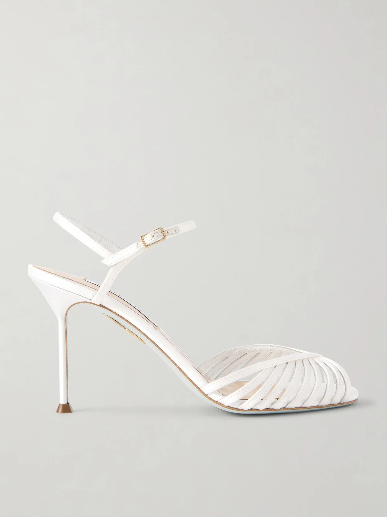 Aquazzura's 'Hold Me' sandals are an elegant choice for your big day or the events surrounding it. They're made from white satin with caged peep-toe straps and rest on slender 85mm stiletto heels.