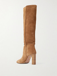 Aquazzura's knee boots are made from suede with 3D whipstitching that intersects at the ankles. They rest on an 85mm wooden block heel and have almond-shaped toes. Style them under maxi dresses or midi skirts.