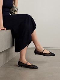 Aquazzura's 'Juliette' flats combine the chic look of Mary Janes and pointe-style ballet flats. They're made from structured mesh embroidered with the tiny dots and a diamond motif and have tonal velvet trims. The metal-tipped heels are a brand signature.