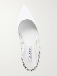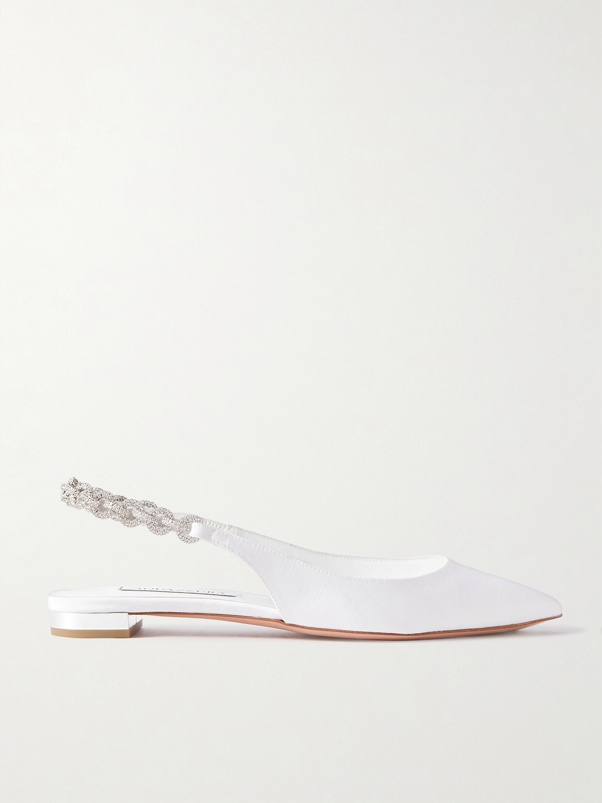 A glistening row of crystals will catch the light as you walk in Aquazzura's 'Love Link' flats. They're made from white grosgrain in a point-toe shape that'll look elegant peeking from beneath a gown or suit.