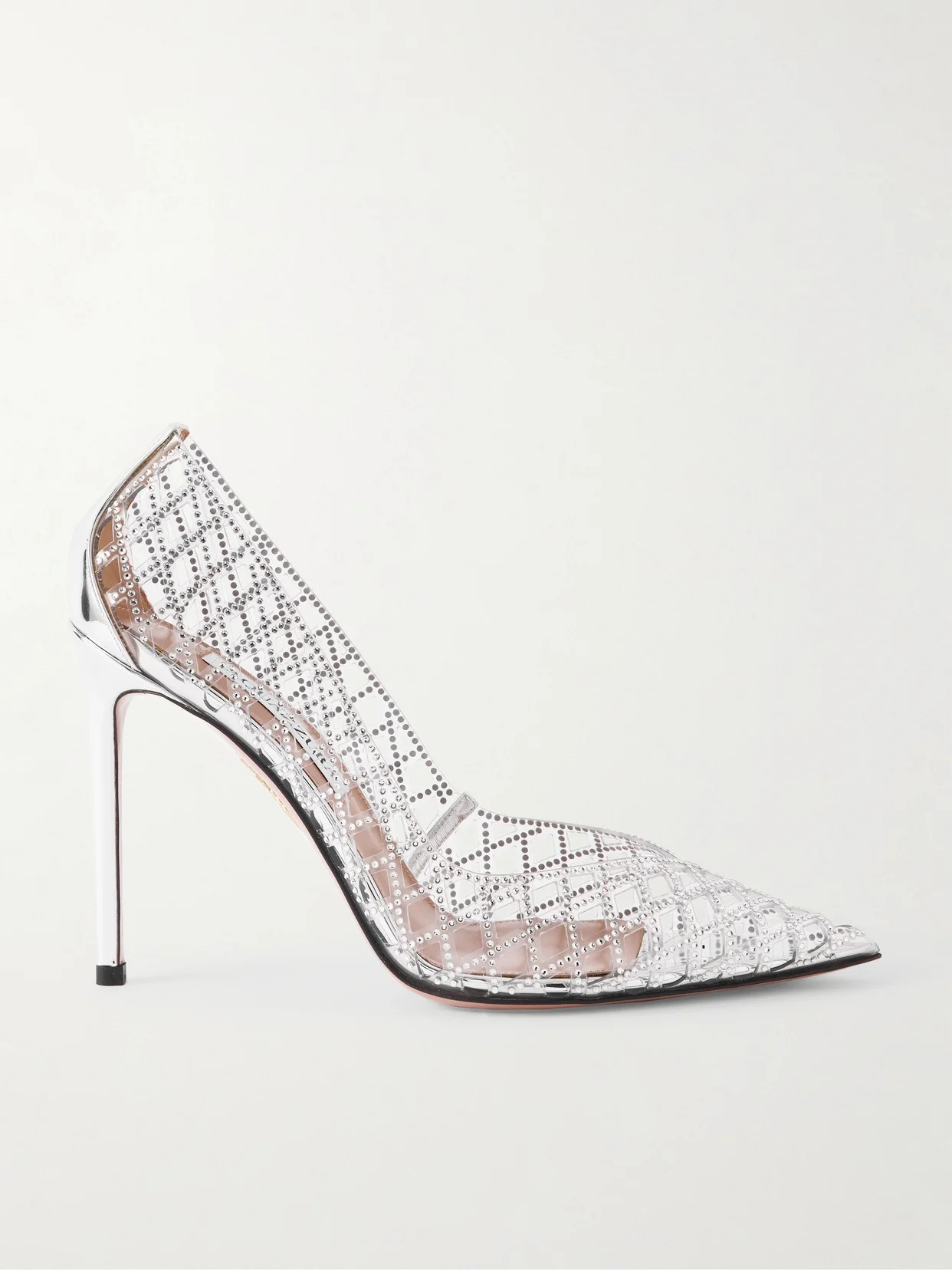 Lumiere 105 Metallic Leather-trimmed Crystal-embellished Cutout Pvc Pumps