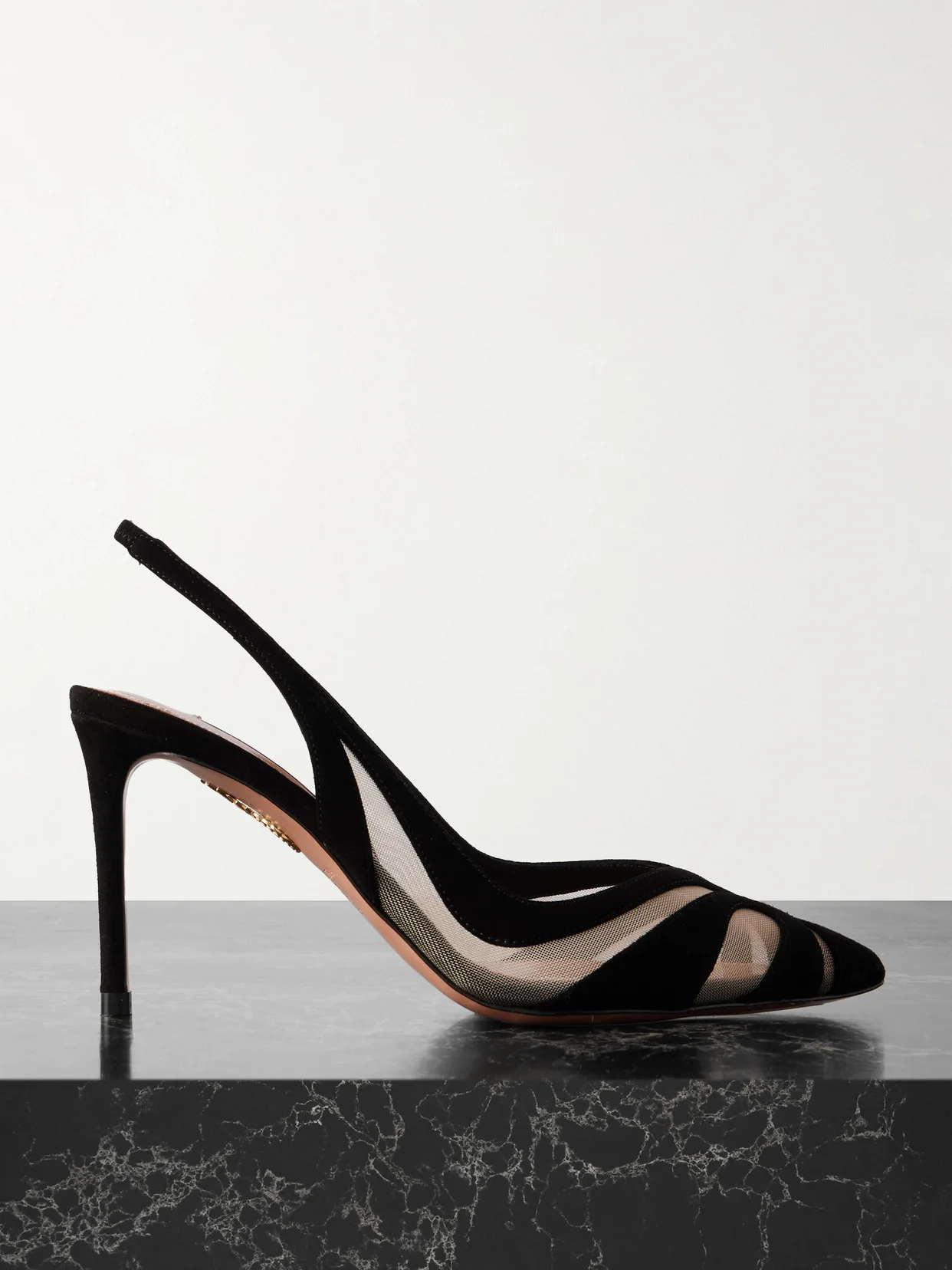Lune 85 Mesh-trimmed Suede Slingback Pumps