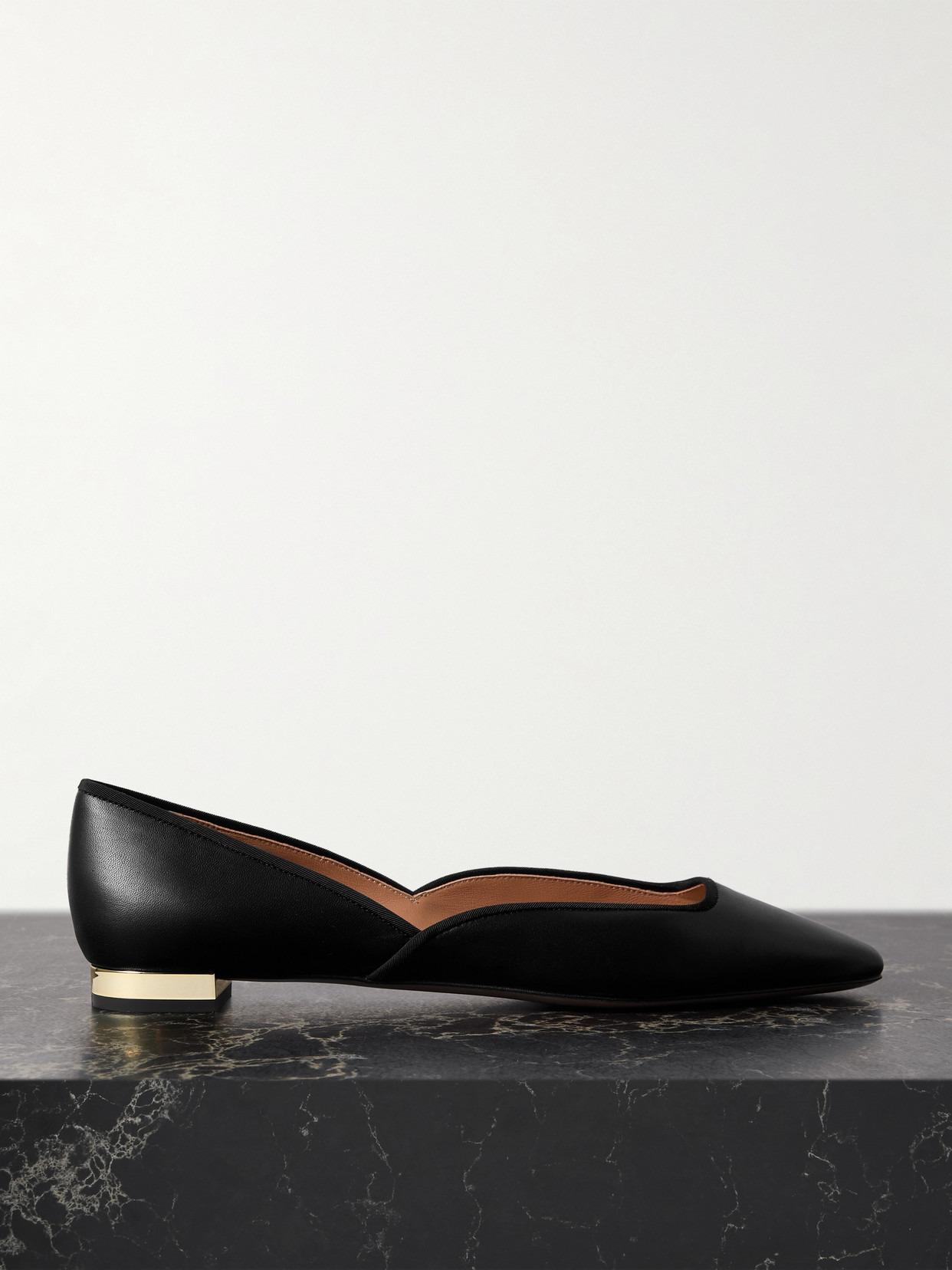 Aquazzura's 'Maia' flats have a d'Orsay silhouette and a sleek gold-tone heel. They've been crafted in Italy from smooth leather with elongated, squared-off toes and tonal grosgrain trims.