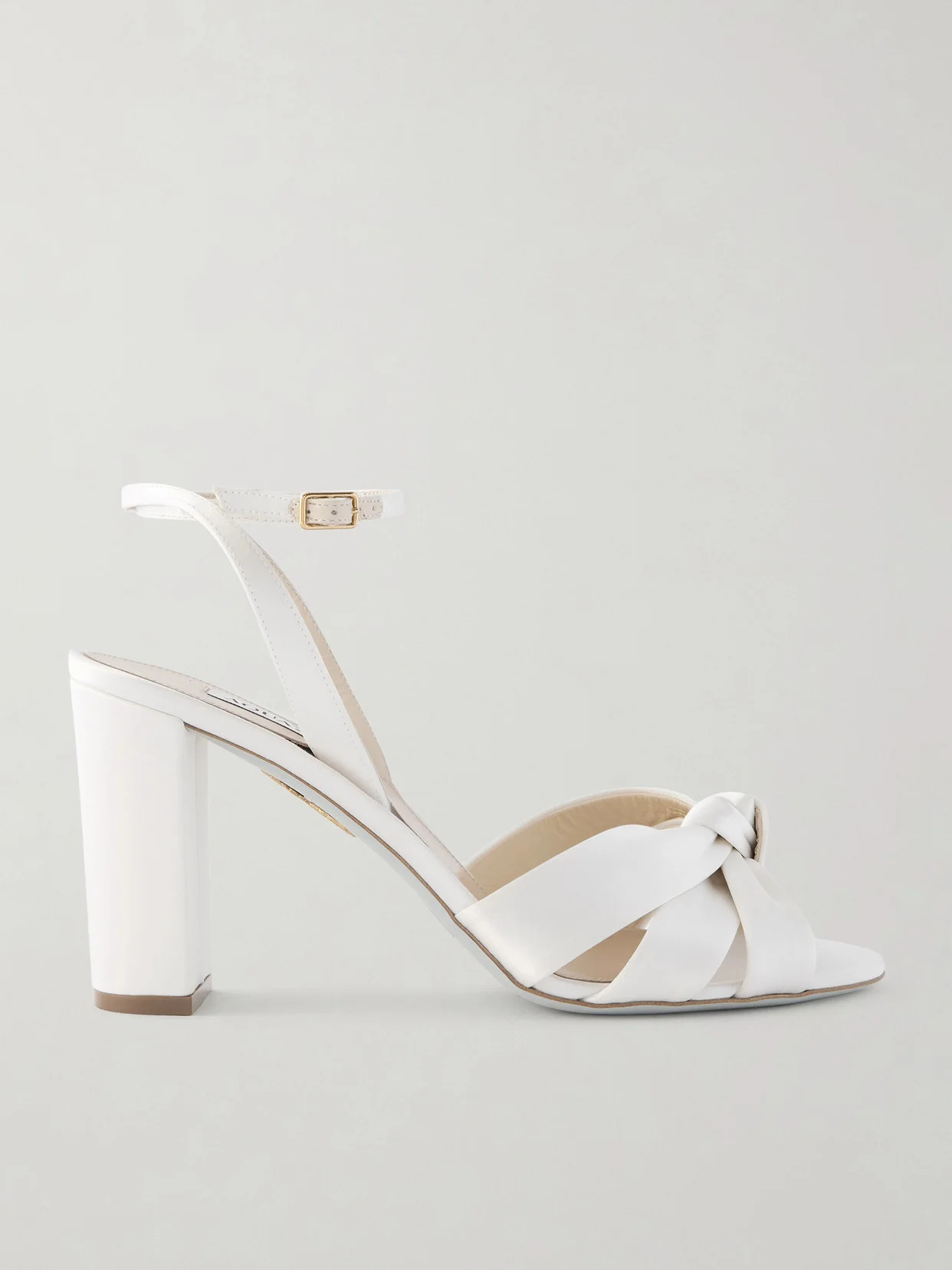 True to Aquazzura's uncompromising standards, these 'Nina 85' sandals have been crafted in Italy from smooth satin. They rest on practical block heels and bear the brand's unmistakable gold pineapple moniker on the underside. You'll want to choose hemlines that keep the knotted toe cage in focus.