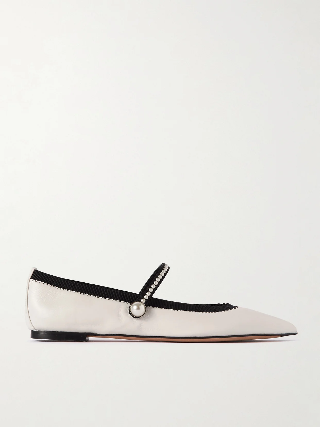 Aquazzura's 'Romy' ballet flats are modeled on classic Mary Janes. Crafted in Italy from supple leather, they're outlined with black grosgrain trims and have faux pearls along the slim foot strap. Wear yours with everything from a flowy skirt to tailored shorts.