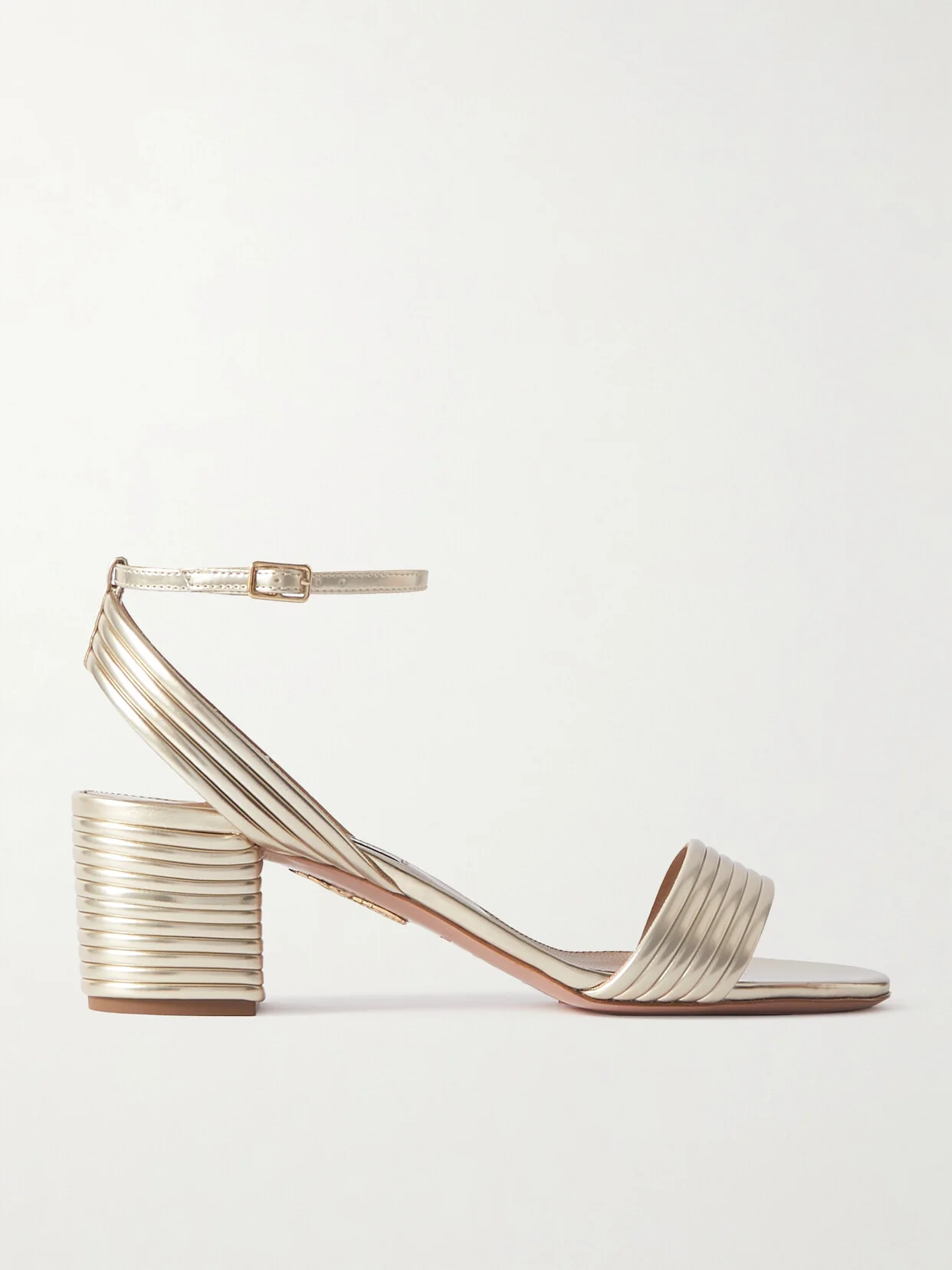 Aquazzura says "if the shoes fit, buy them in every color;" so we guarantee you'll want to pick up these 'Sundance' sandals in every version. This gold version is made from stacked bands of metallic synthetic material and set on a manageable 50mm block heel that's ideal for longer events. The wide and thin straps will secure and frame your foot.
