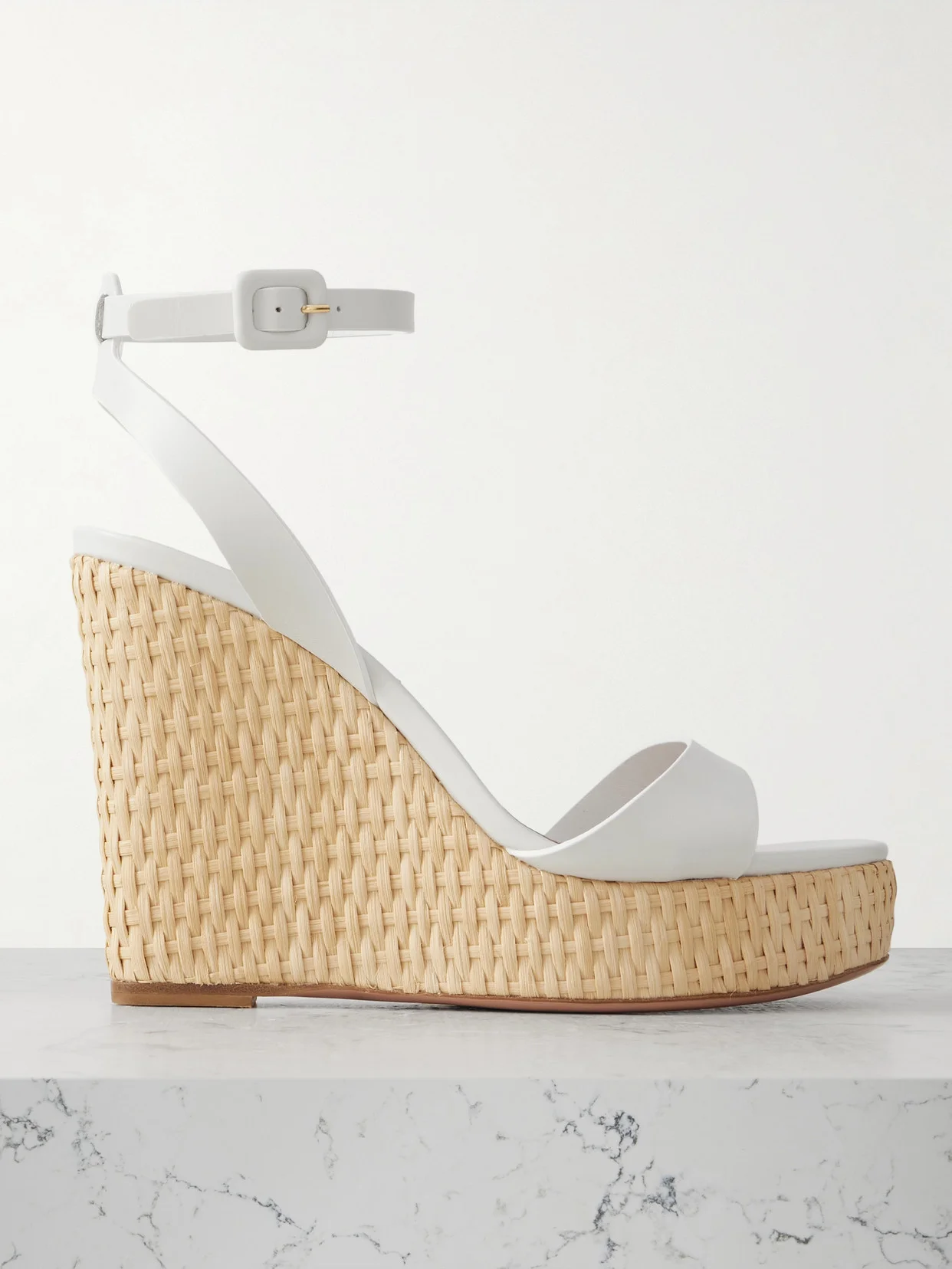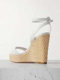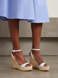 Aquazzura's 'Sunseeker' platform sandals are perfect for brunches and alfresco dinner dates. They're made in Italy from white leather and are set on 110mm wicker wedges. Style yours with everything, from denim to midi dresses. Small to size. See Size & Fit notes.
