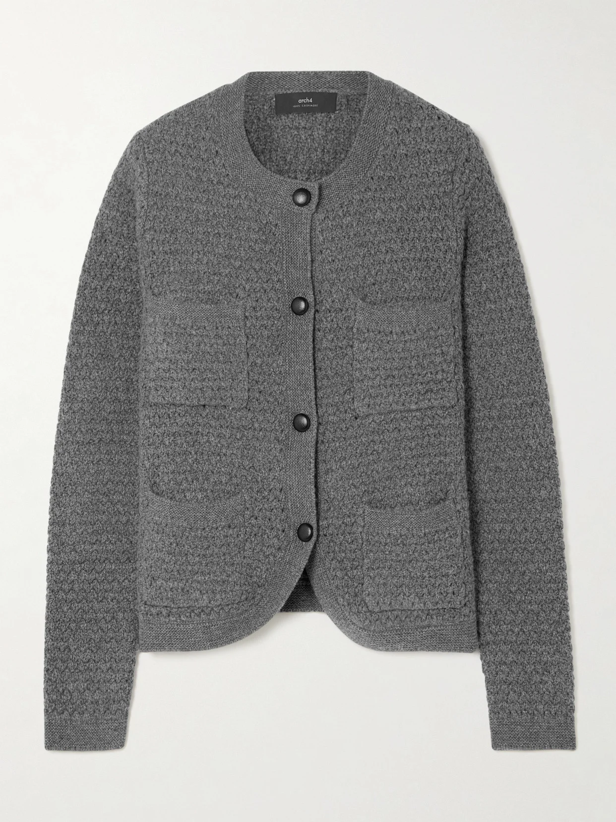 Arch4's clothes are designed to be lived in and loved. This 'Tulip' cardigan is crocheted for a tweed-like texture that feels elegant but relaxed at once. It has subtle patch pockets and a sweetly curved hem.