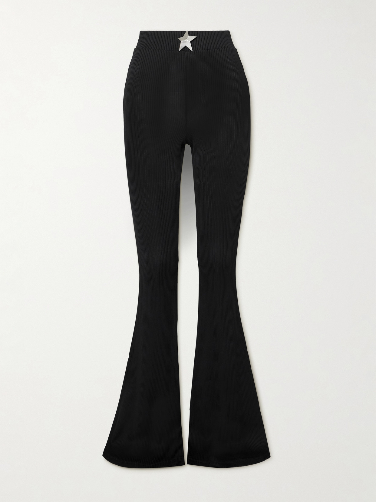 New York nightlife inspires AREA. These pants are rib-knitted from jersey with a semi-sheer finish and have a high-rise bootcut shape. Style yours with a cropped top to show off the star charm on the waistband.