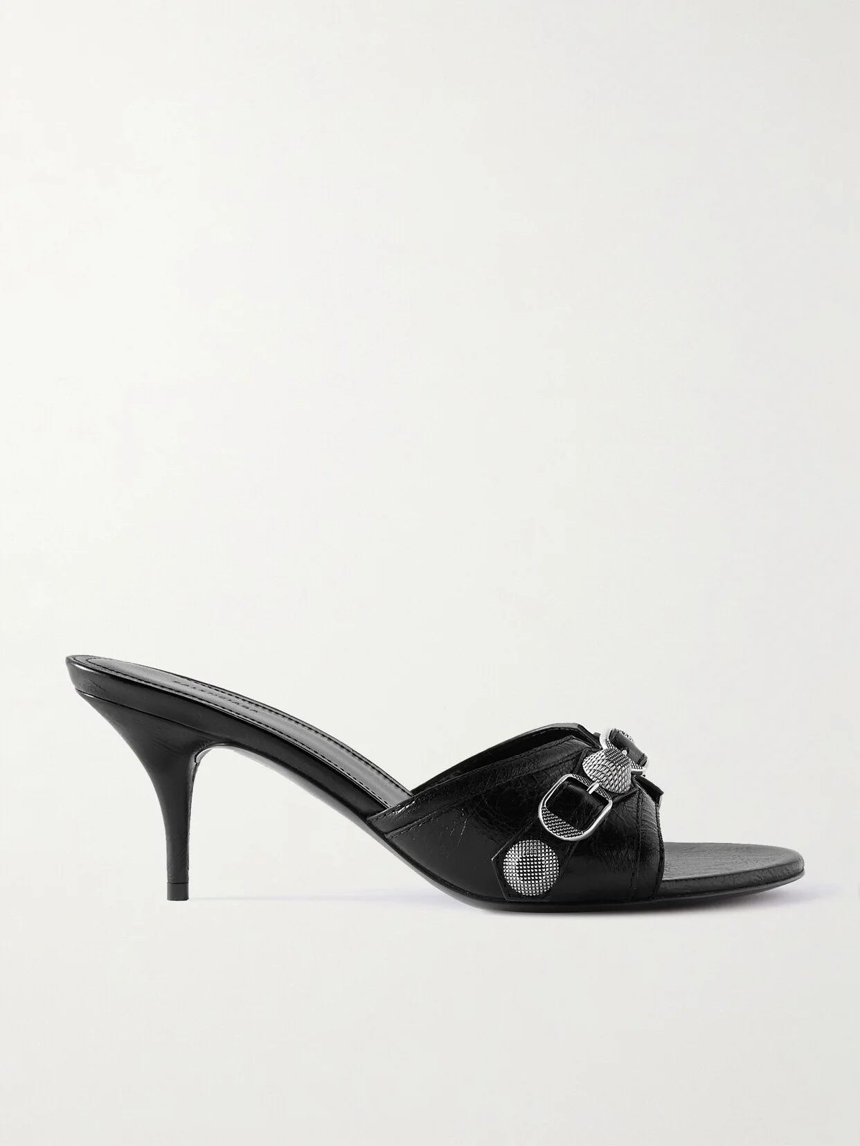 Balenciaga's 'Cagole' mules are embellished with rivets, studs and buckles usually seen on the bag of the same name. They're crafted from black leather and have a manageable slim heel. Style them with wide-leg jeans and an oversized shirt.