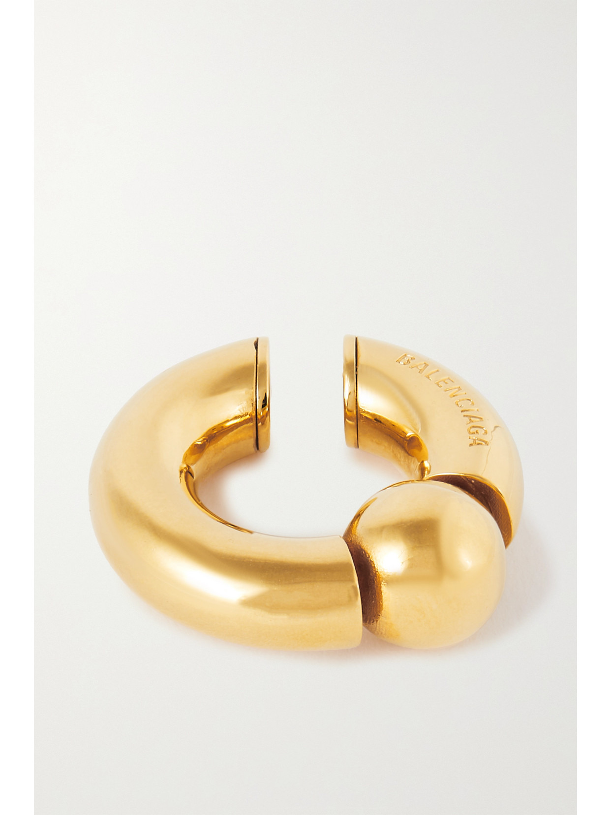 Balenciaga's ear cuff has a chunky sculptural shape that's great for stacking or wearing solo. It's made from gold-tone metal and subtly engraved with the house's moniker.