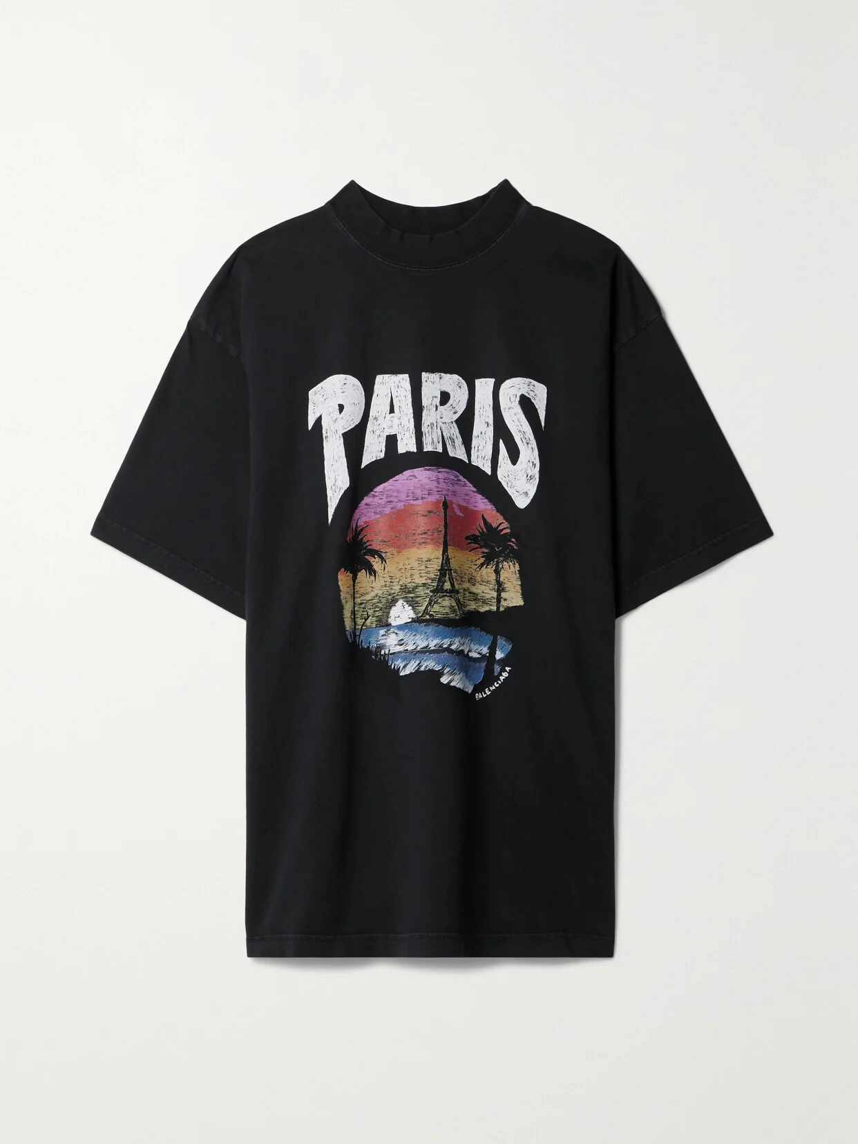 Balenciaga's T-shirt is printed with the Eiffel tower - instead of being surrounded by the vibrant city of Paris, it's set against a background of a tropical island complete with a gorgeous sunrise, rolling waves and palm trees. It's cut from soft cotton-jersey and has a loose fit.