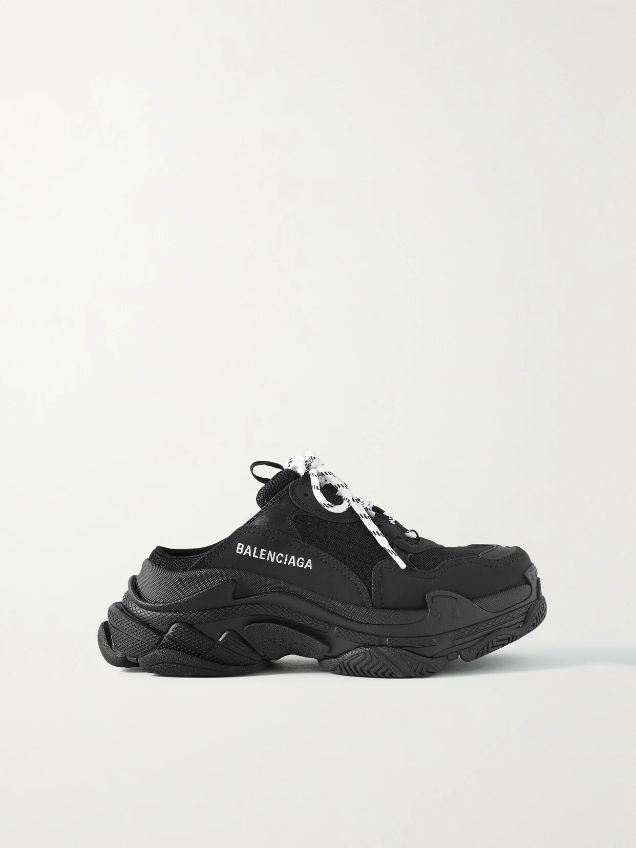 Triple S Embroidered Faux Nubuck And Mesh Slip-on Sneakers