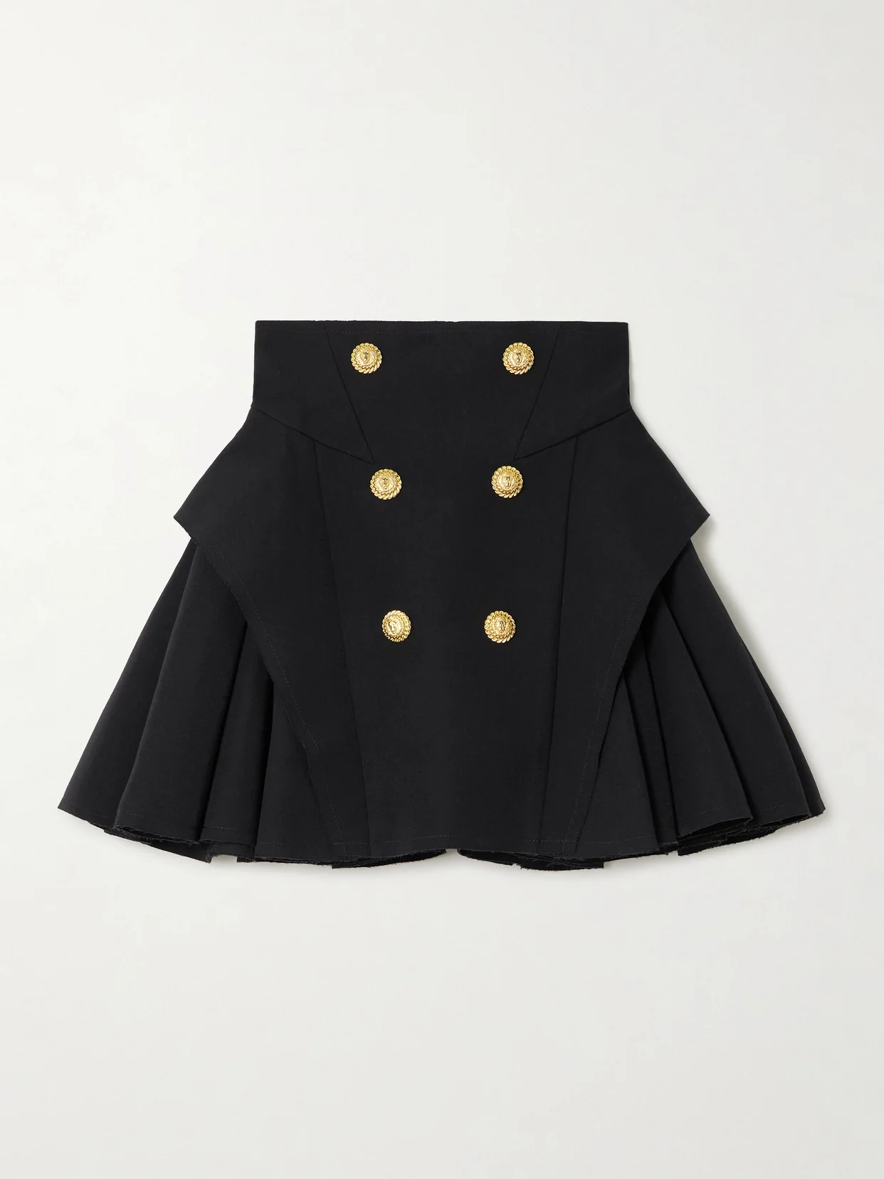 Button-embellished Pleated Grain De Poudre Wool Mini Skirt