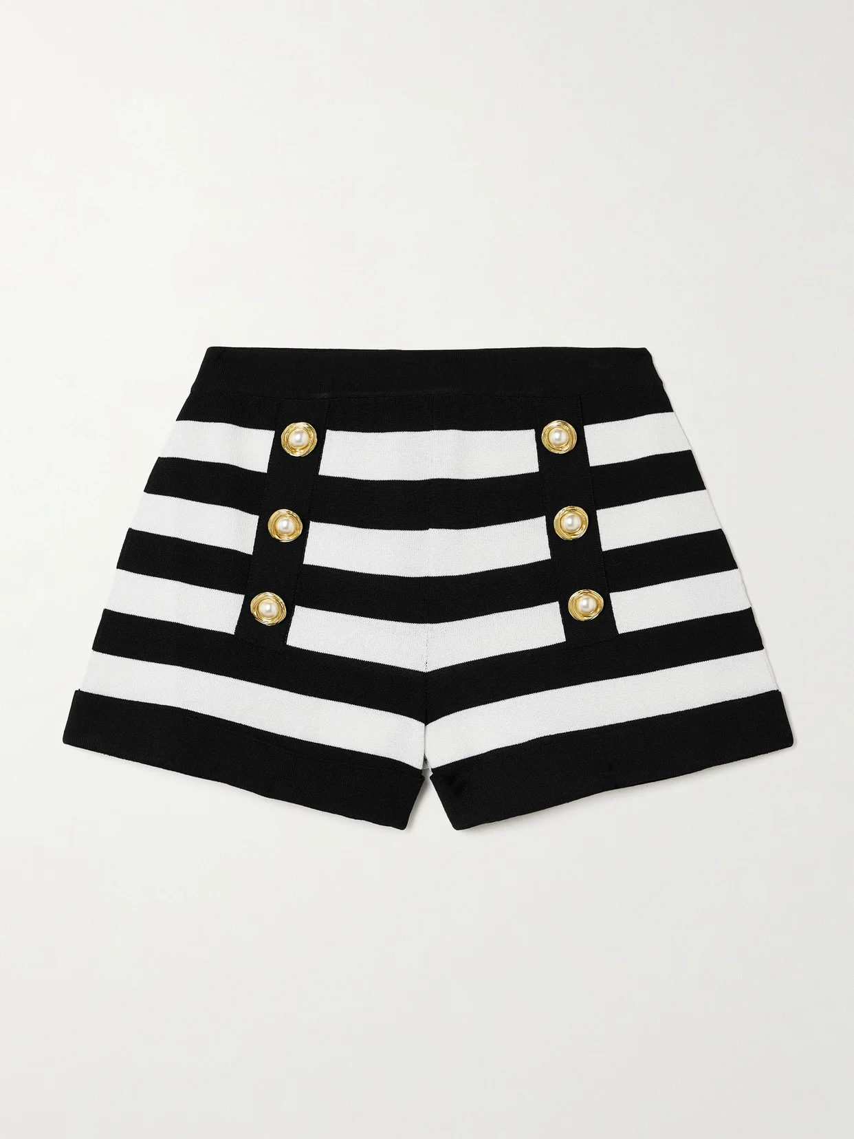 Designed to sit on the waist, Balmain's striped shorts are knitted for a slightly loose fit and embellished with gold-tone and faux pearl buttons for a retro, nautical-inspired feel. Style yours with a classic tank or T-shirt.