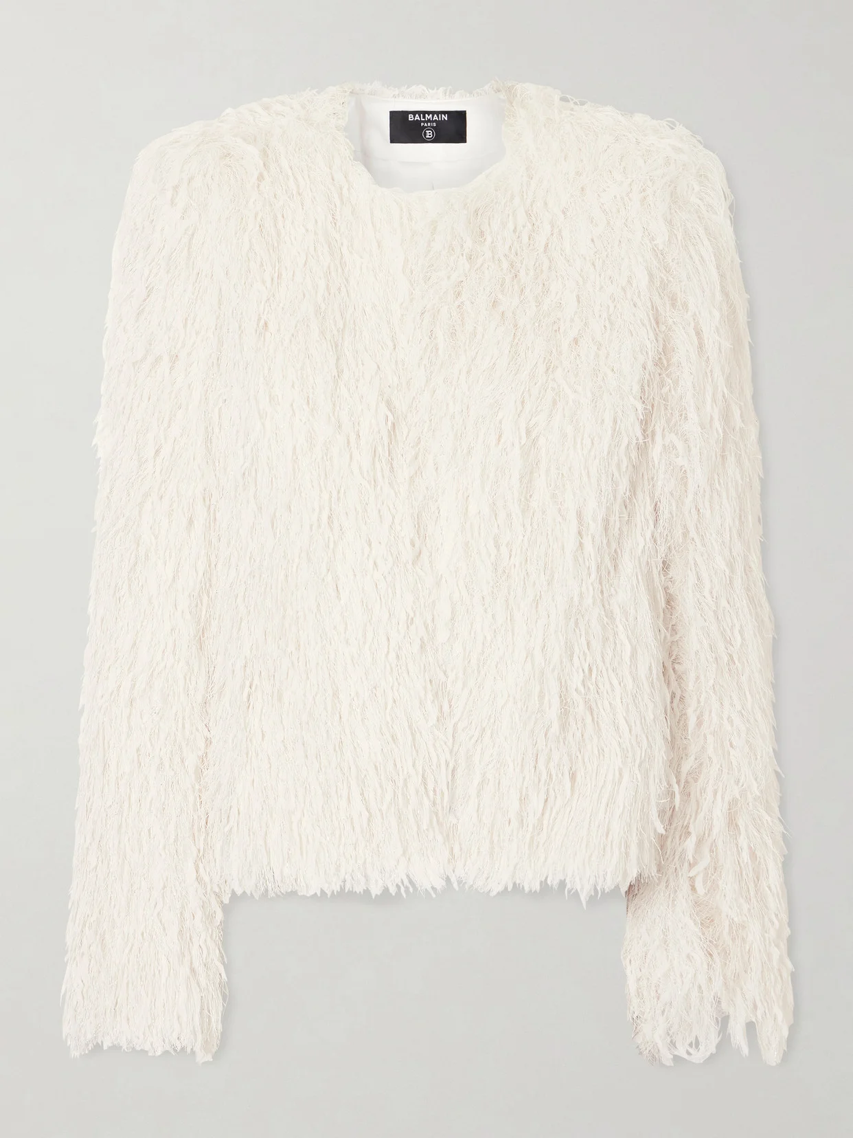 Balmain's jacket will add a glamorous finishing touch to so many outfits. It's been made in France from tweed and is covered in fringing for a textural finish. The shoulders are defined, staying true to the brand's sculptural aesthetic.