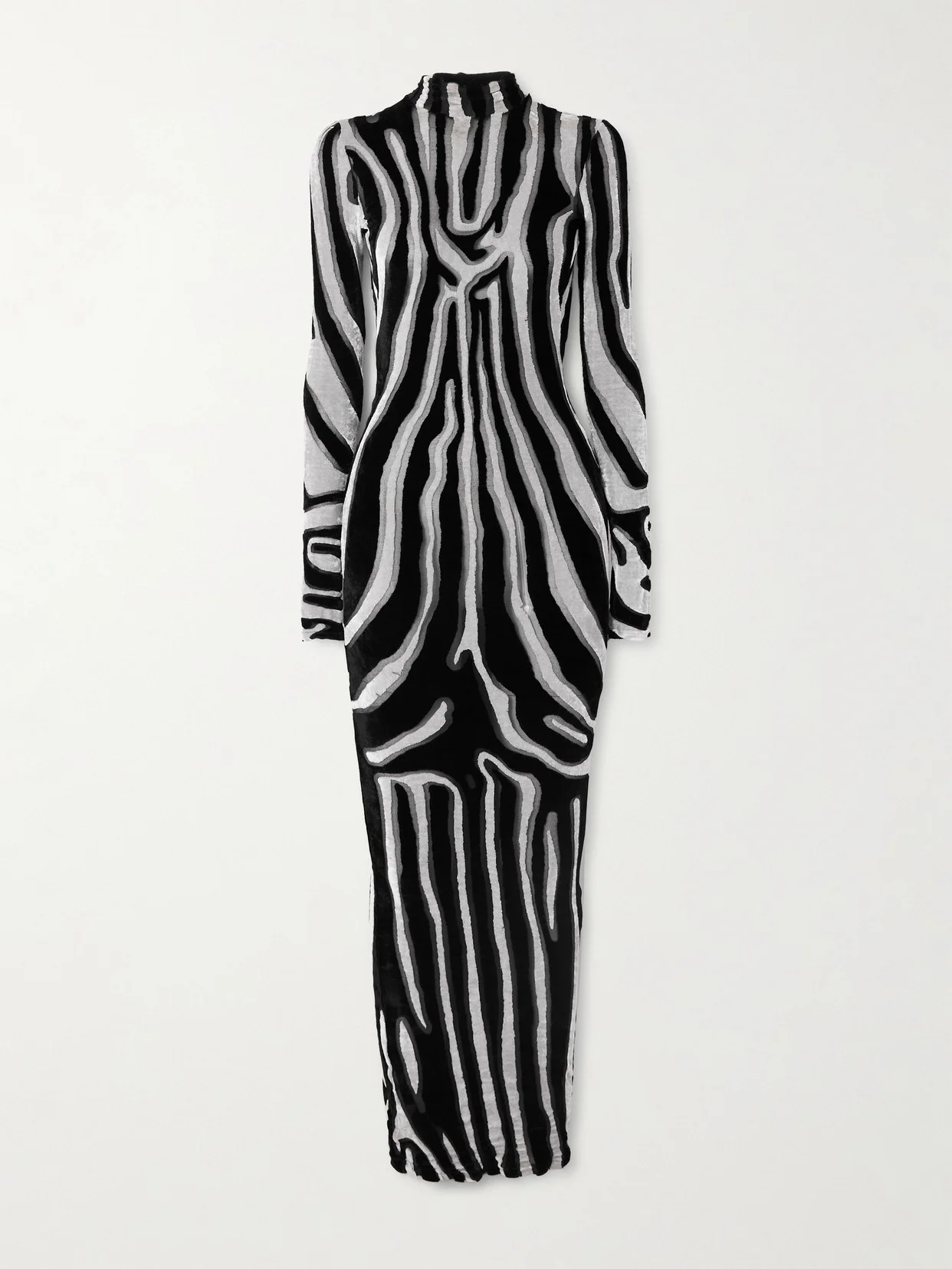 Bold zebra stripes are a key element from Balmain's Fall '25 collection - the animal print honors the brand's long-standing love of monochrome designs. This midi dress is made from slinky jersey that skims your figure and has an elegant open back.