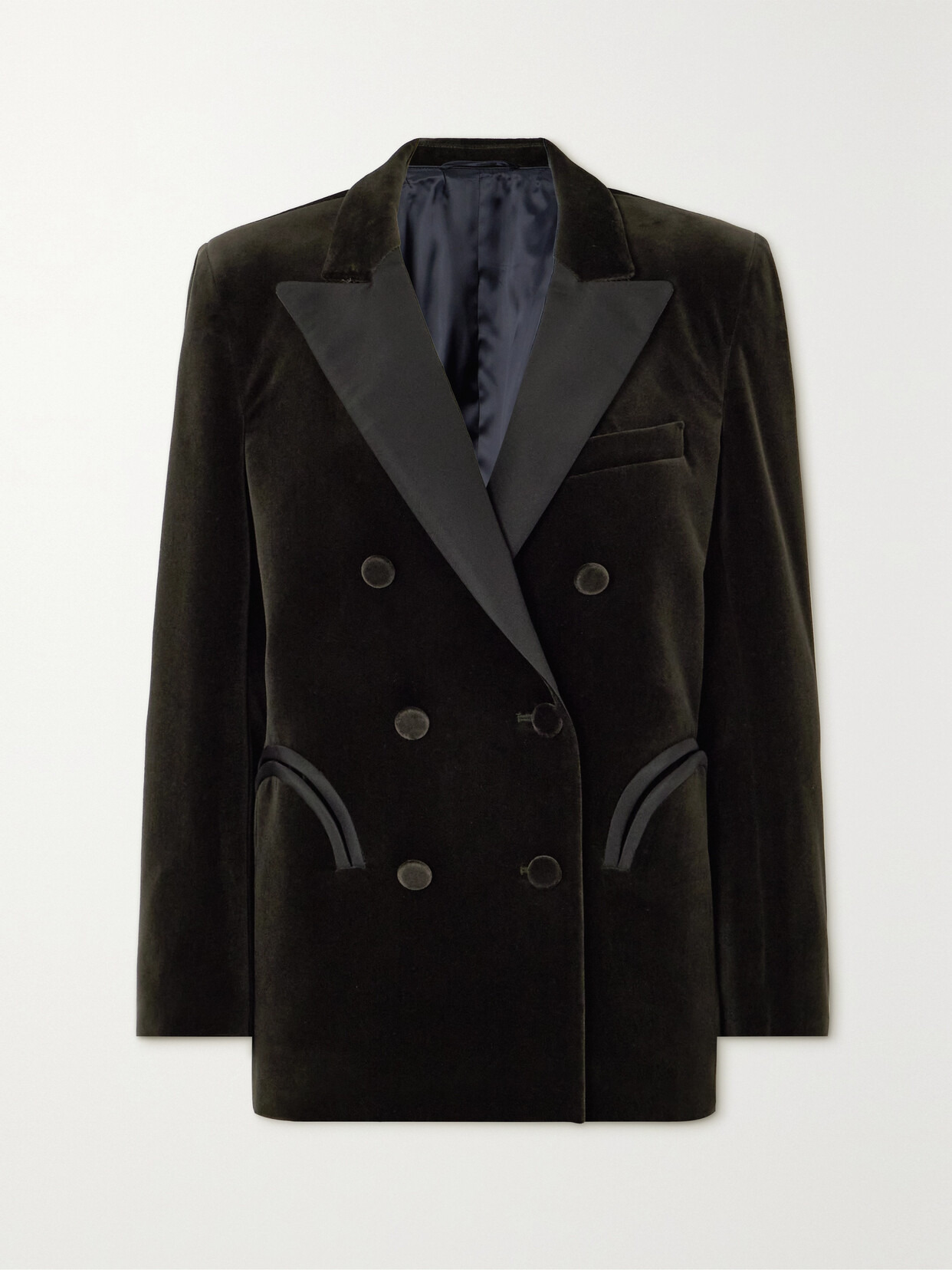Everynight Double-breasted Silk-satin Trimmed Cotton-velvet Blazer