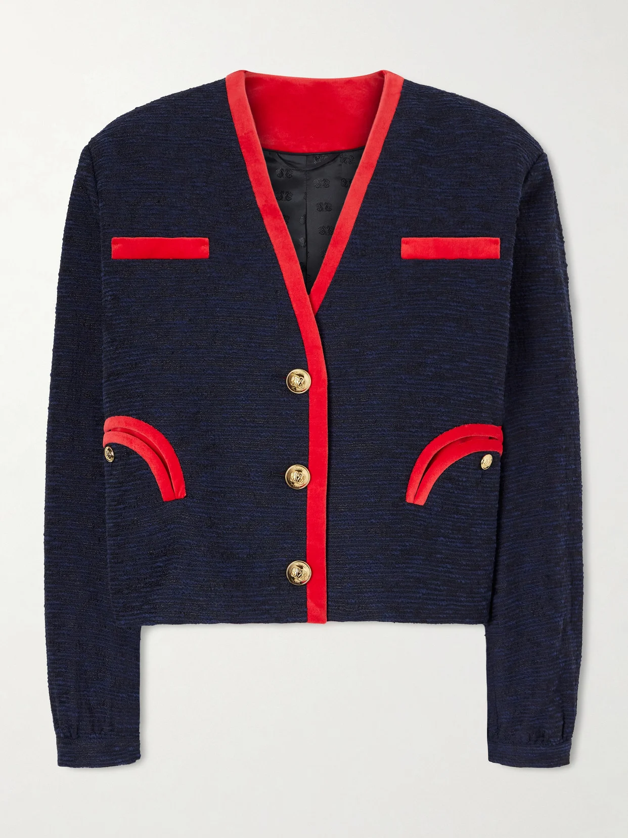 BLAZE Milano has a flair for making tailoring feel playful yet impeccably polished. This 'Riviera' jacket is cut from cotton-blend tweed and elevated with contrasting red velvet trims for a bold finish. Complete the look with matching pieces from the collection.