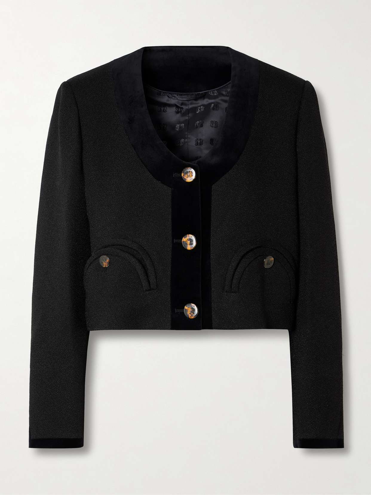 BLAZE Milano's 'Luna Spiti' jacket is timeless and chic. It's cut from a densely woven cloth for a cropped, boxy fit and defined by a low scoop neckline with soft velvet trims. Team yours with slingbacks and the matching 'Morelia' pants.