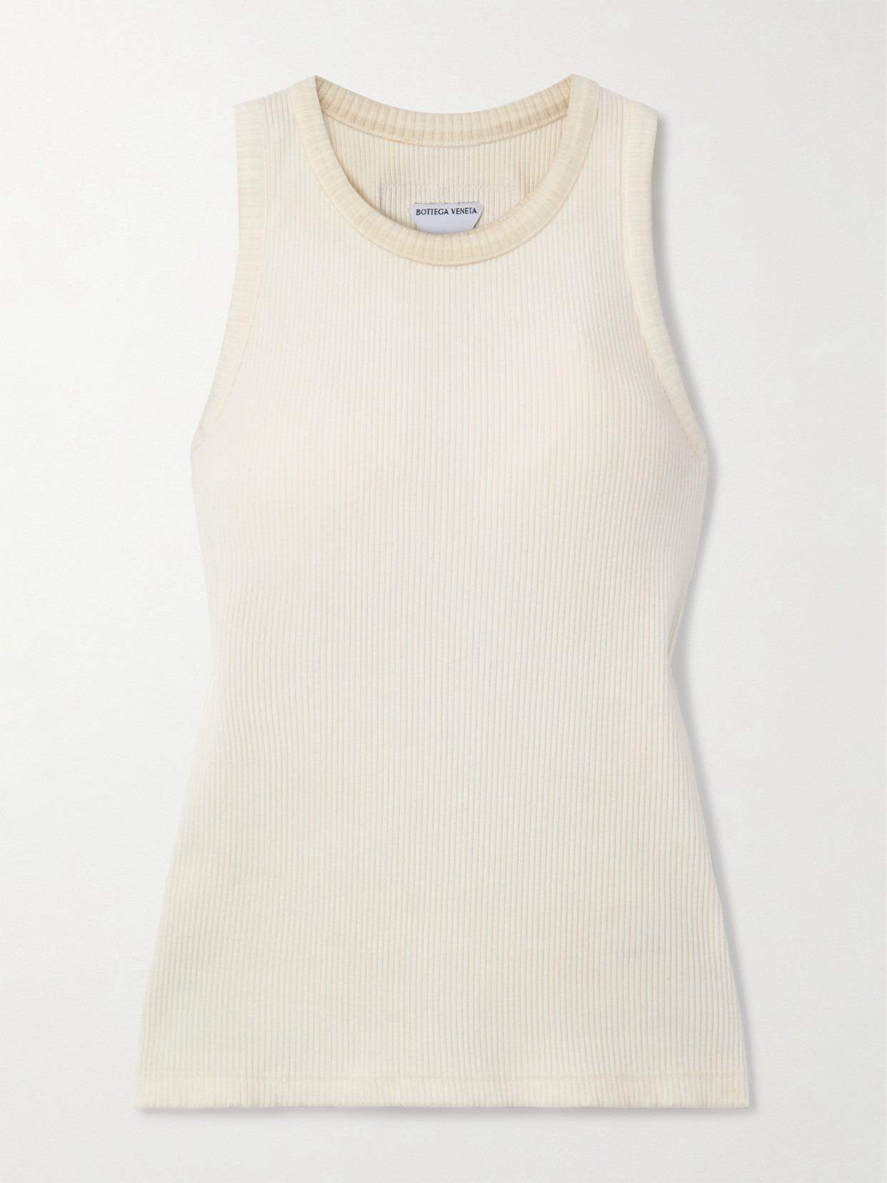 Bottega Veneta's tank is designed with a sizable logo applique at the nape, featuring a fierce dinosaur. It's been made in Italy from ribbed cotton-blend jersey for a slim fit and has racerback straps. Pare yours back with classic jeans. Lower-Impact Materials. This product is made using at least 50% lower-impact materials or ingredients. Find out more about our NET SUSTAIN criteria here.