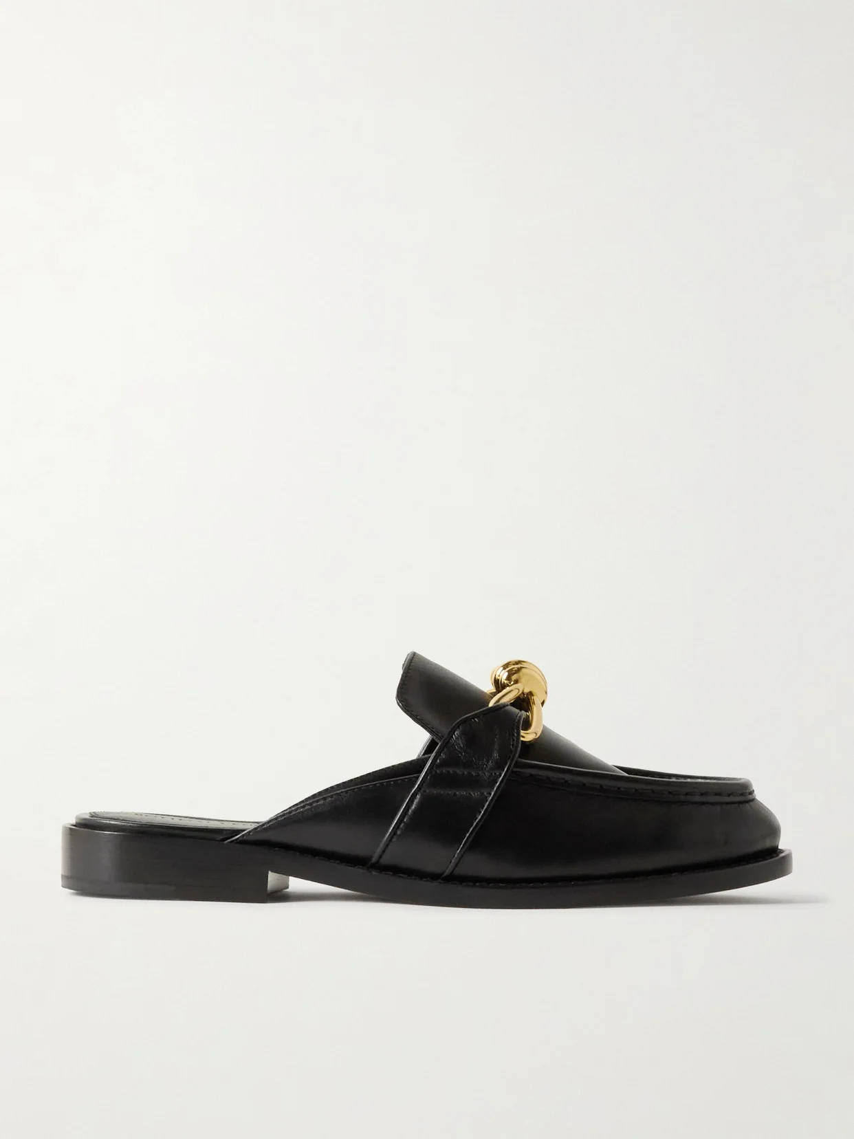 Bottega Veneta's 'Astaire' slippers are defined by the signature 'Knot' hardware adorning the vamp. They're made from leather and have moccasin-inspired stitching and an easy, backless silhouette.