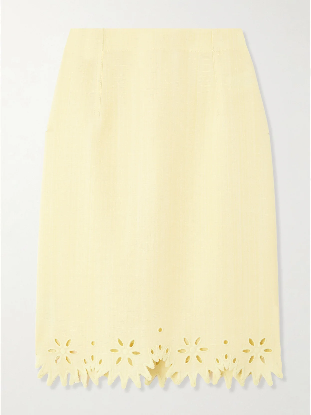 Fresh and summery, Bottega Veneta's skirt is made from light-yellow broderie anglaise with flowers along the scalloped hem - the matching top in our edit features the same detailing. It's designed in a pencil silhouette and has a darted waist and back split.