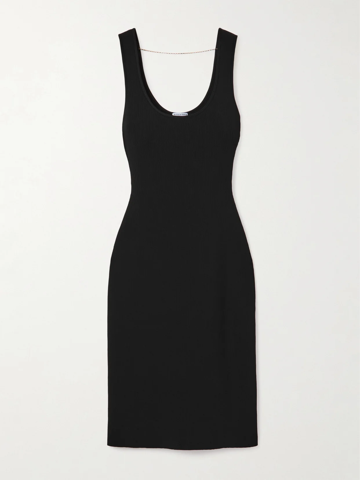 Bottega Veneta's dress is decorated with a dainty gold-tone chain at the scooped back, keeping the straps perfectly in place - a closer look reveals the signature knots at each end. It's made from ribbed-knit derived from FSC viscose for a slim fit and has an otherwise minimal design. Lower-Impact Materials. This product is made using at least 50% lower-impact materials or ingredients. Find out more about our NET SUSTAIN criteria here.