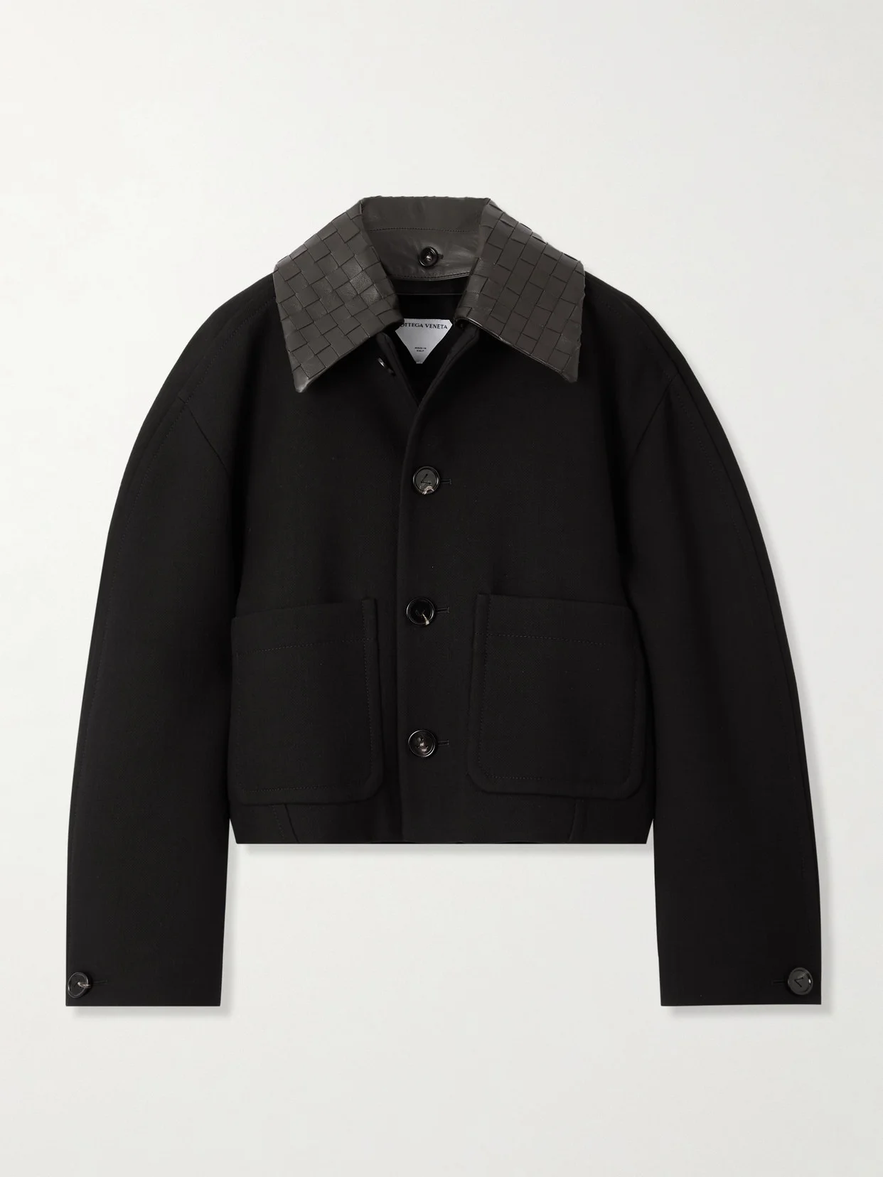 Convertible Intrecciato Leather-trimmed Cotton-blend Jacket