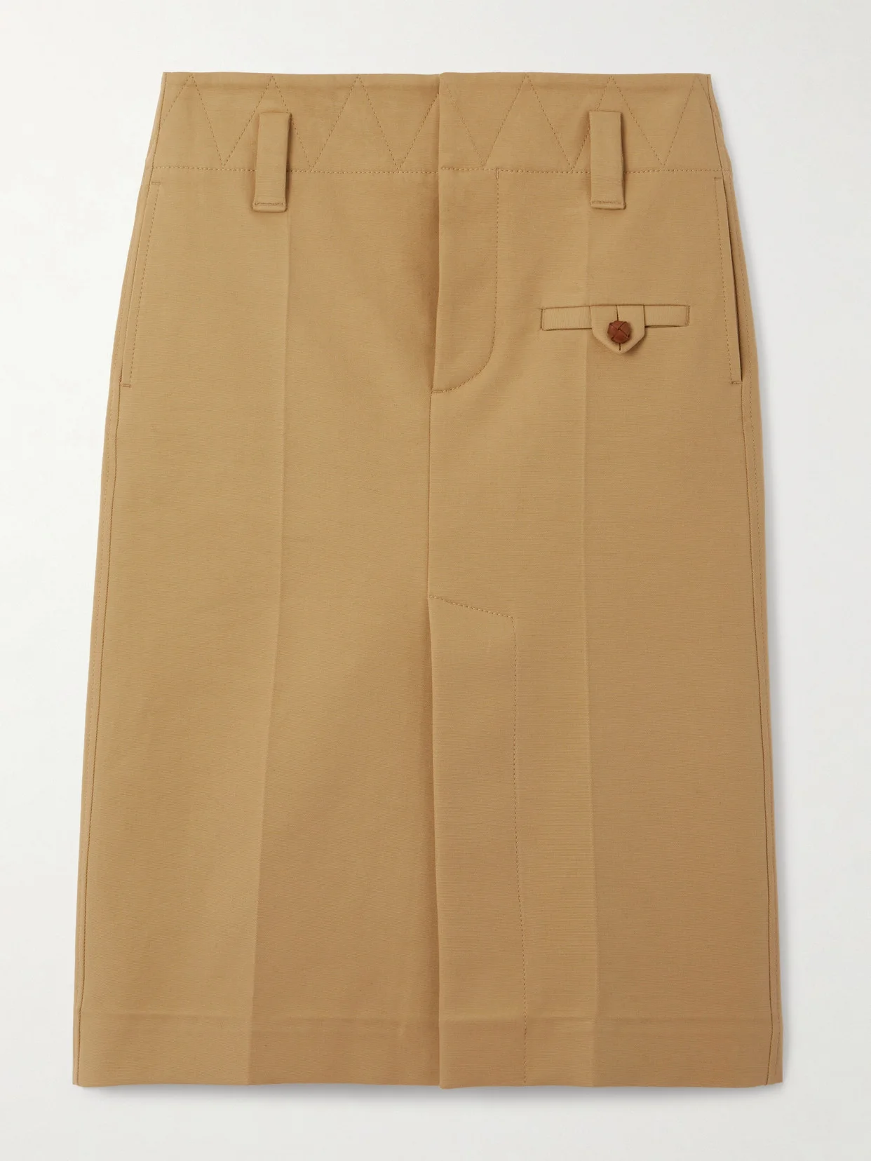 Referencing the style of the '60s and '70s when Bottega Veneta opened its doors, there's a timeless practicality to the label's Pre-Fall '24 collection. This knee-length skirt is cut from double cotton-canvas in an A-line silhouette. Thread a belt through the oversized loops to define the waist.