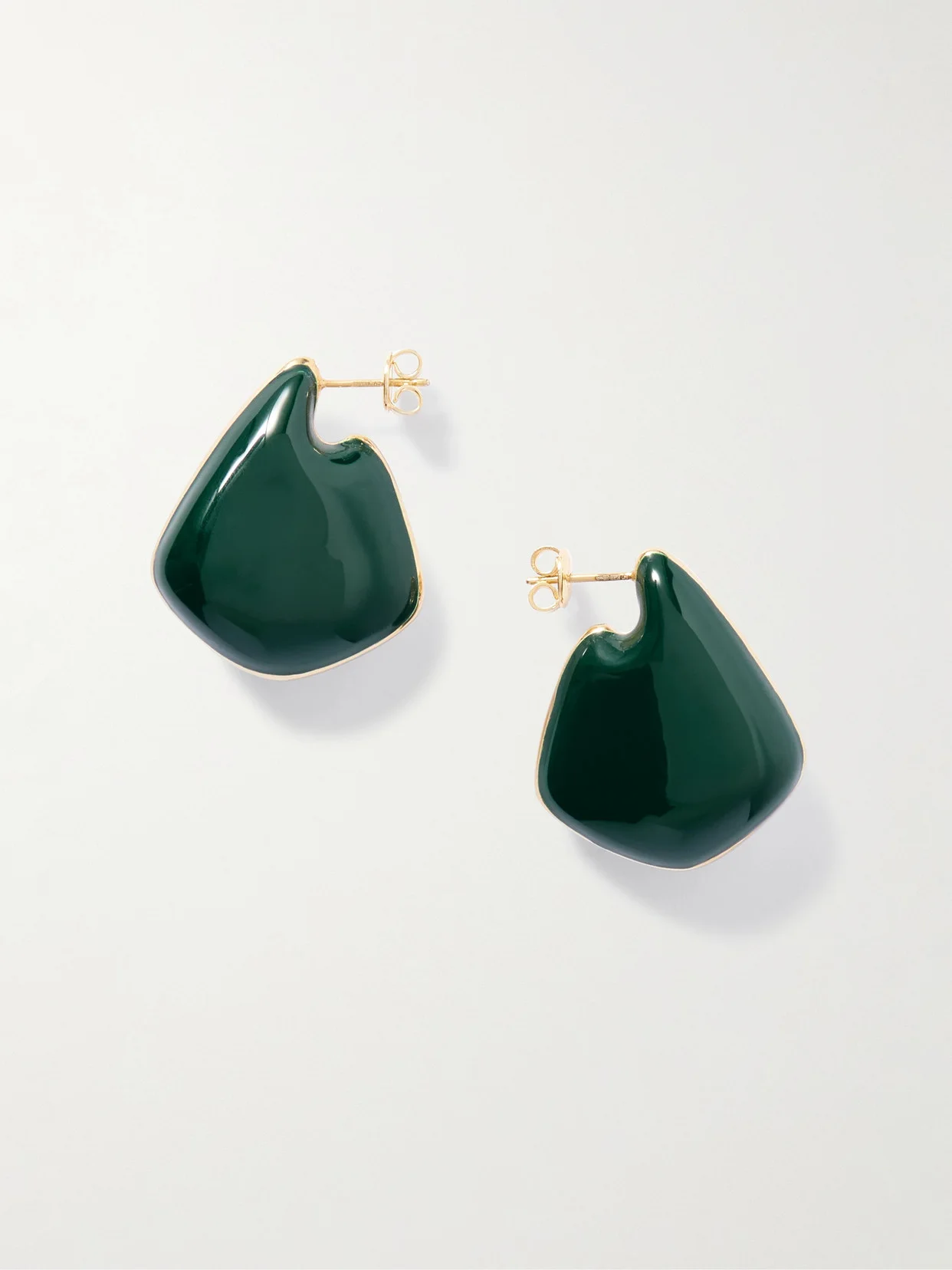 Bottega Veneta's earrings are molded in a geometric shape inspired by fins. They've been crafted in Italy from dark-green and white enamel using an innovative electroforming technique and traced with a band of gold-plated sterling silver.