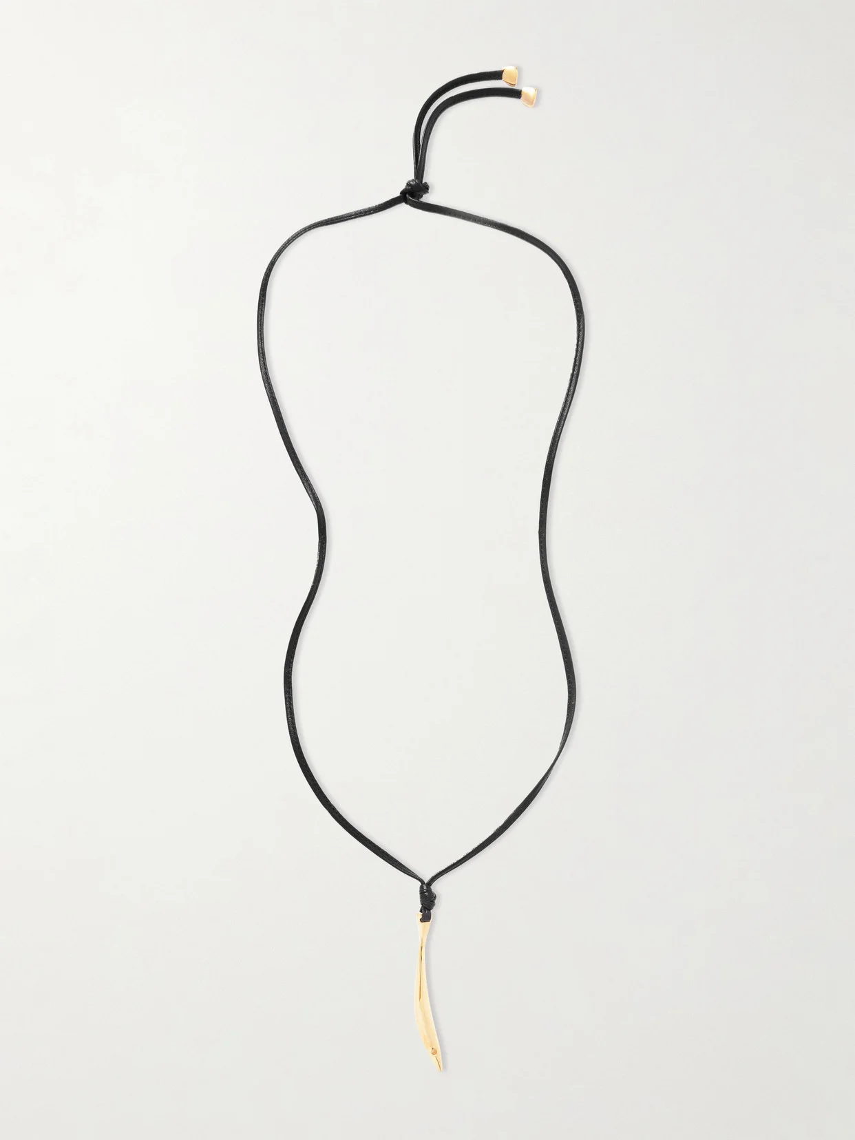 Bottega Veneta's necklace is strung with a curved pendant that nods to the sculptural top handle of its 'Sardine' bag. It's made from soft leather and has adjustable gold-plated tipped ties for versatile styling.